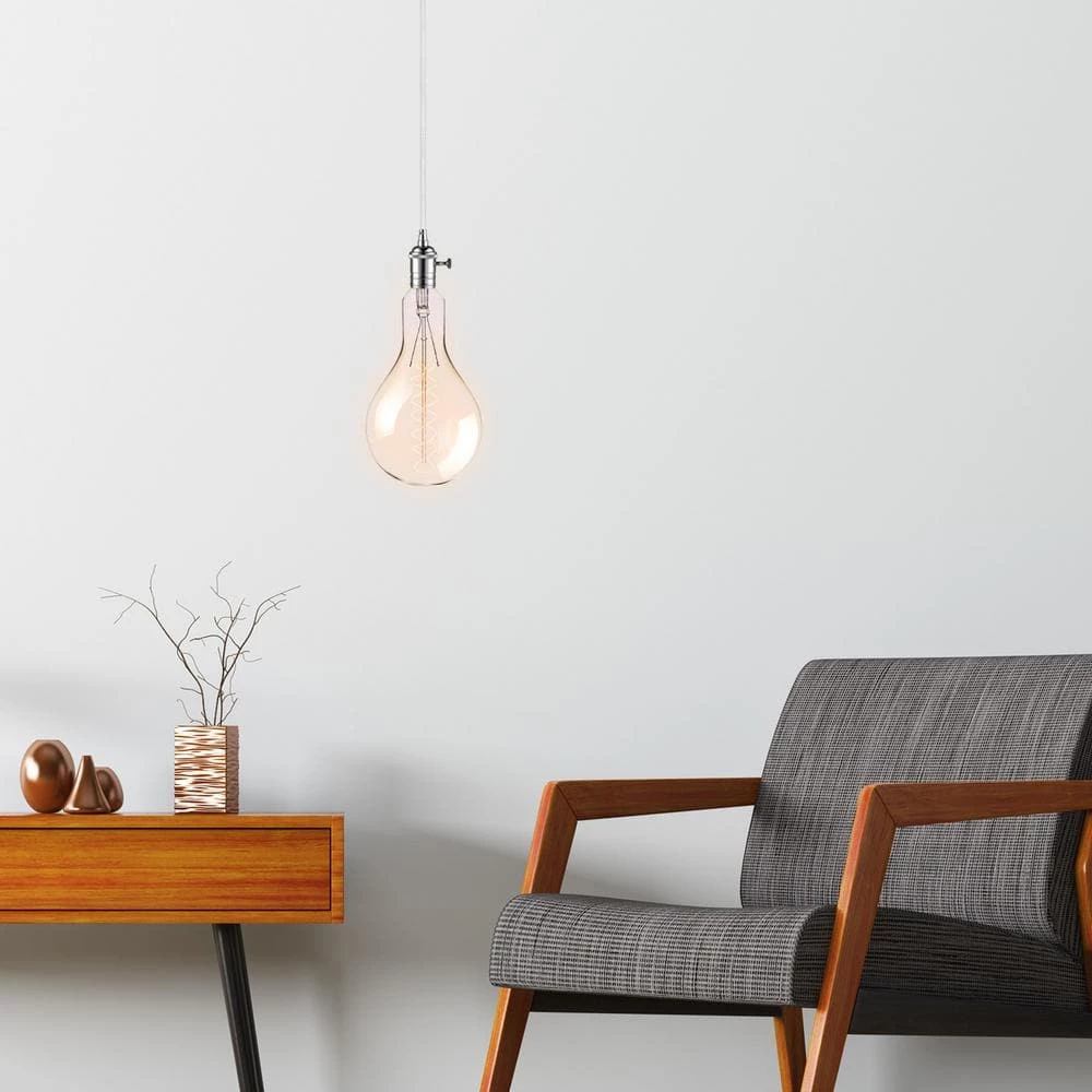 Stay on-trend with Globe Electric’s Oversized Incandescent Bulbs. Globe’s Oversized Vintage Style 100W Clear Glass Dimmable Incandescent Light Bulb is a perfect accent light. The spiral-shaped filament creates a warm and welcoming glow that provides authenticity to any vintage interior. Position it within an exposed socket pendant or fixture to enjoy its shape and ambient glow. With a standard E26 base, this bulb fits in any lamp or fixture. Crafted to preserve the look of early 20th century lighting, Globe Electric’s oversized classically shaped bulb is a great center piece for any room.