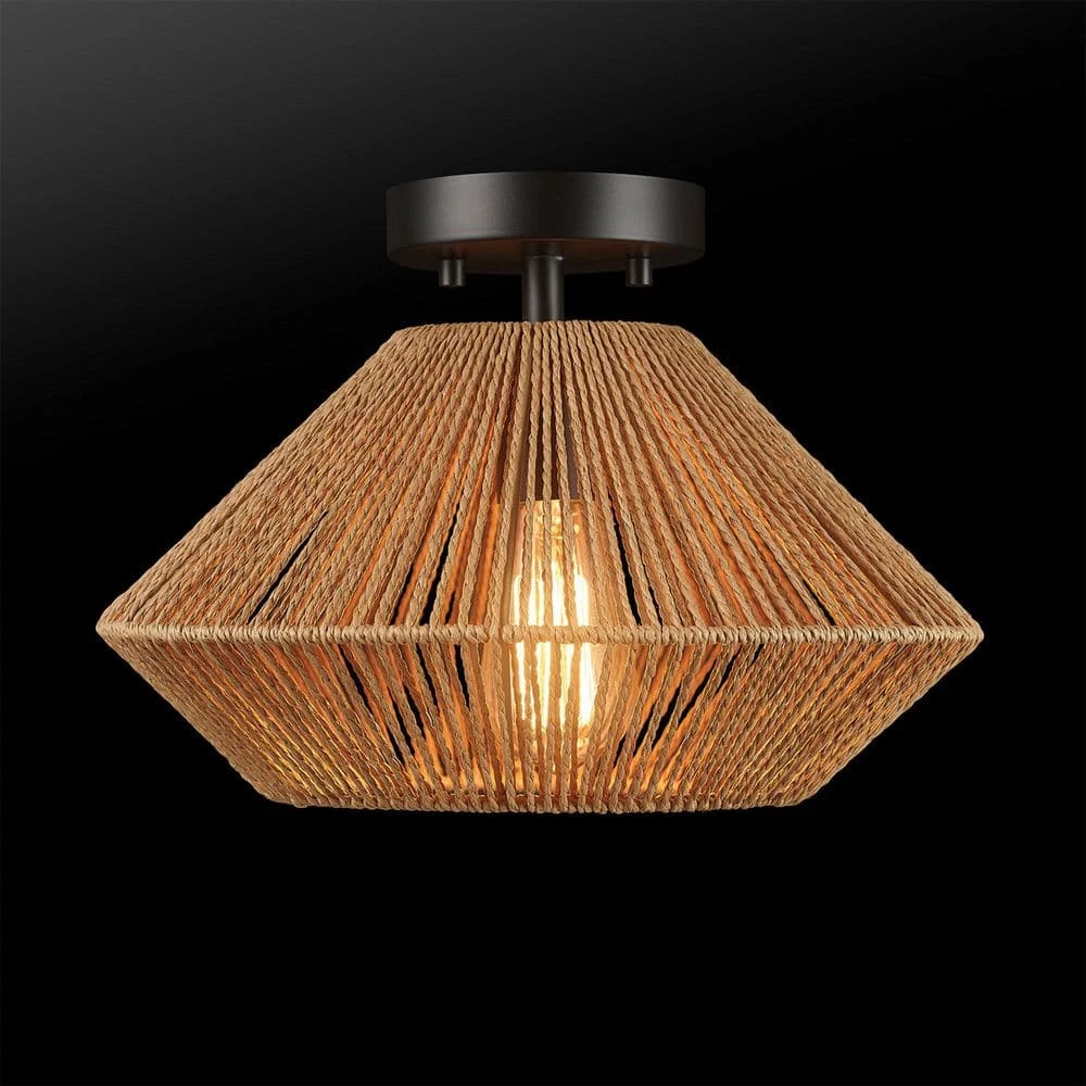 - Light your home in style the natural twine shade and unique shape of the 1-light flush mount light fixture offers stylish lighting for your well-decorated home