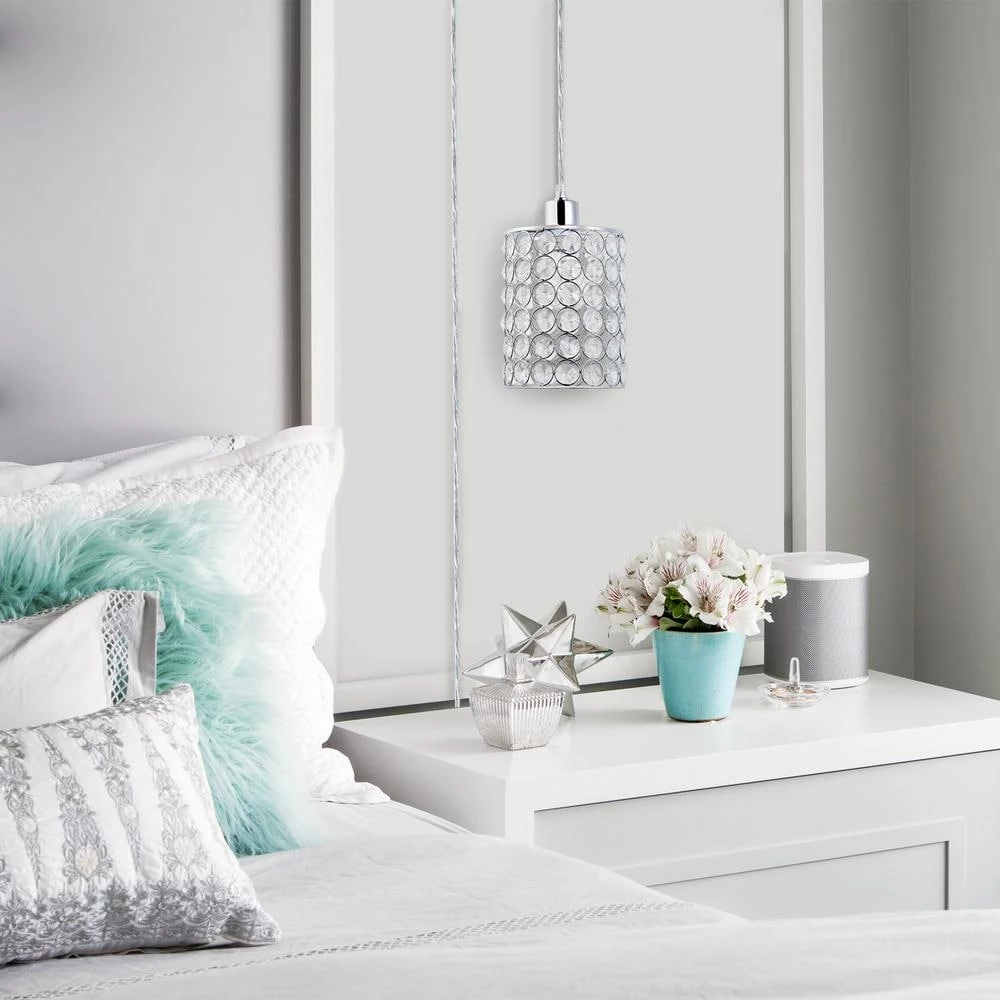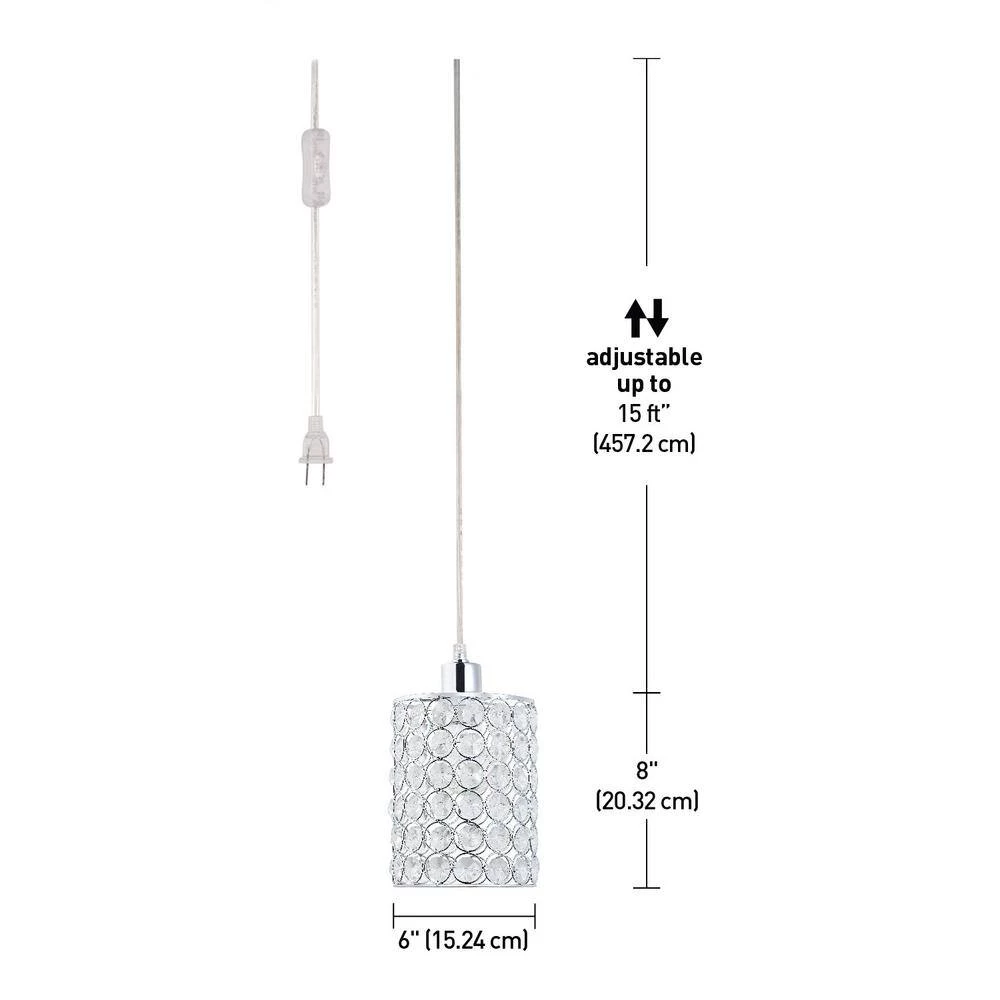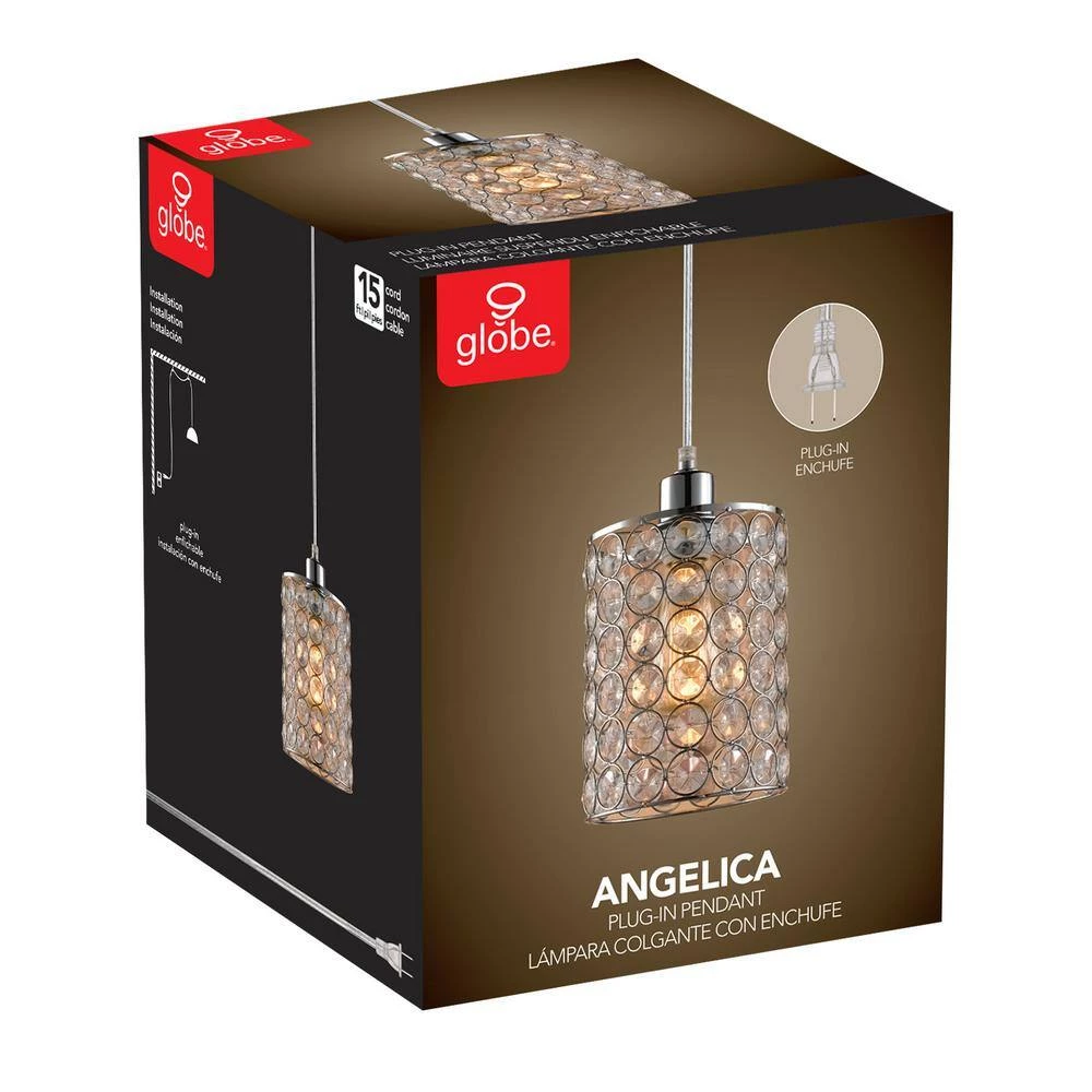 Give your dining room, billiard room or island kitchen a makeover with Globe Electric’s gorgeous Angelica 1-Light Cylindrical Plug-In Pendant. This modern light features a chrome finish and is elegantly encased with beautiful crystals. The shimmering light will capture your imagination and will ensure a wonderful evening alone or with guests. The in-line on/off rocker switch is conveniently located near the plug making it easy to find and easy to use. Requires one medium 60W bulb (sold separately).