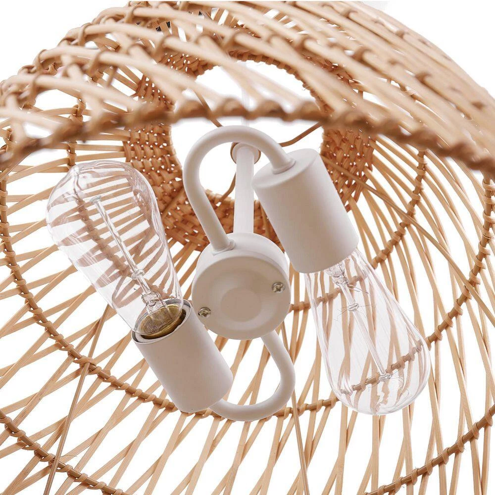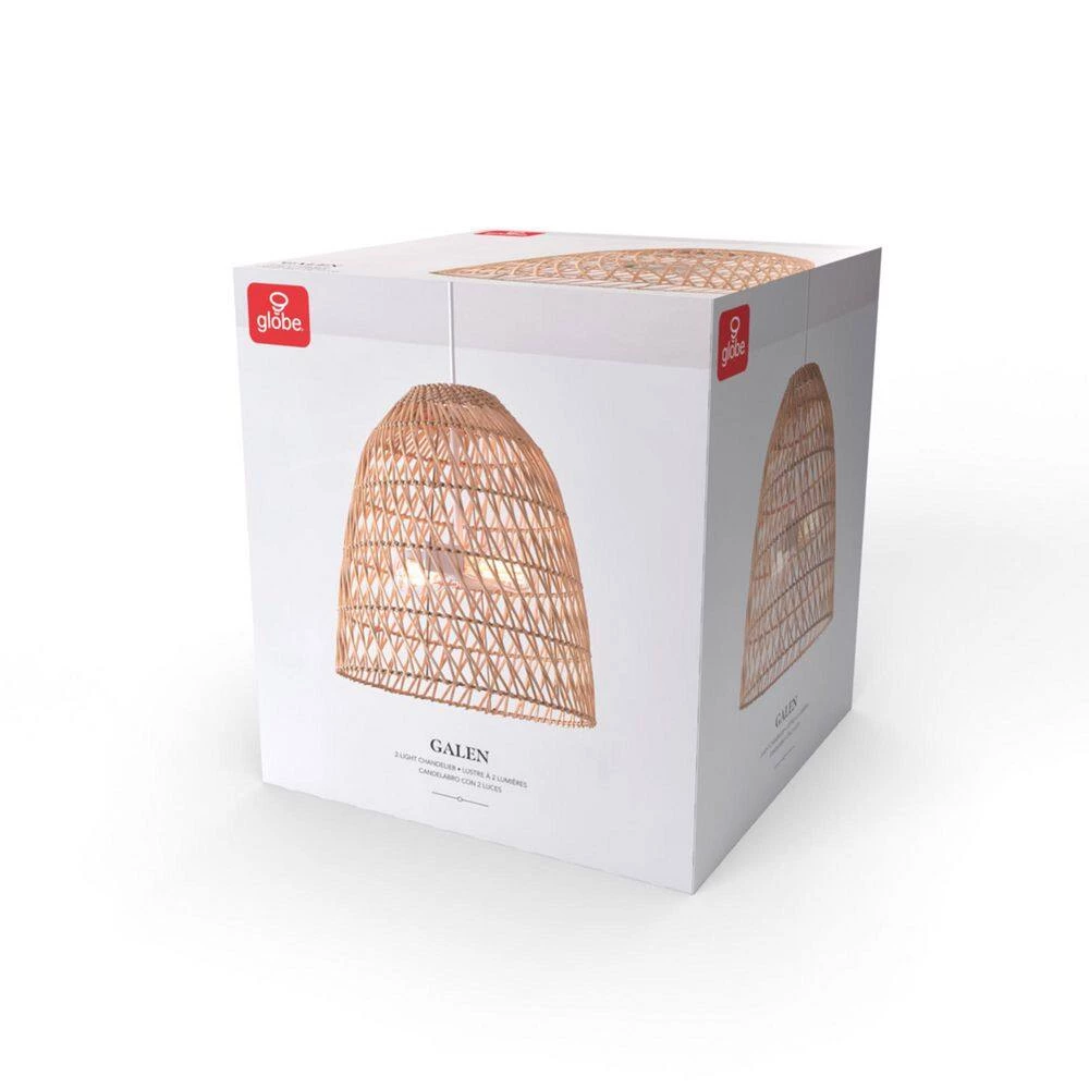 The Galen 2-Light Chandelier is not only stunning to look at, it is also a completely unique way to bring light into any room you choose. The natural bamboo and rattan shade is accented by a white canopy and hanging cord and complements all existing decor in your home. The adjustable cord allows you to adjust the H of this Japandi style chandelier to best fit any space you live in. The shape modernizes the whole design and would look amazing in your living room, bedroom or entryway while offering a cozy color palette that brings a warm vibe to any area. With its peekaboo shade concept you can showcase the bulbs of your dreams. Try adding vintage Edison bulbs for an easy retro look or use designer bulbs for a completely different feel. Since this light uses two standard E26 base bulbs, you can even use Globe Smart Bulbs to create different lighting designs for every aesthetic and mood – the possibilities are endless.
