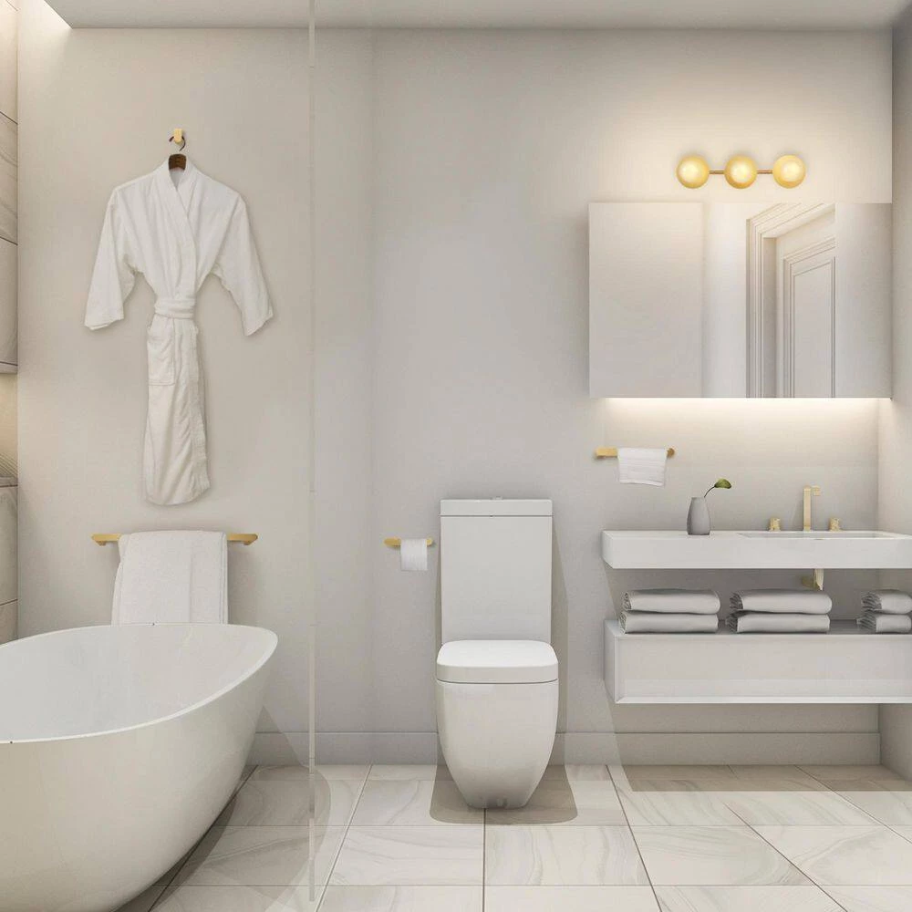 - Easy install includes a 3-light vanity fixture, towel bar, toilet paper holder, towel ring and robe hook, with all mounting hardware needed and clear instructions for quick and Easy installation