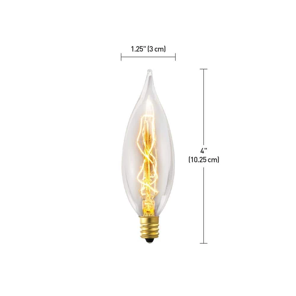 Add a traditional appeal to your home with this dimmable Globe Electric 25-Watt Incandescent CA10 Vintage Edison Light Bulb. The 105-lumen output makes any area of your home shine with an amber gold light. For energy and cost efficiency, it averages three hours of usage per day. Edison-inspired design offers central glass housing with a glowing, cage-shaped filament, giving any room an attractive look.