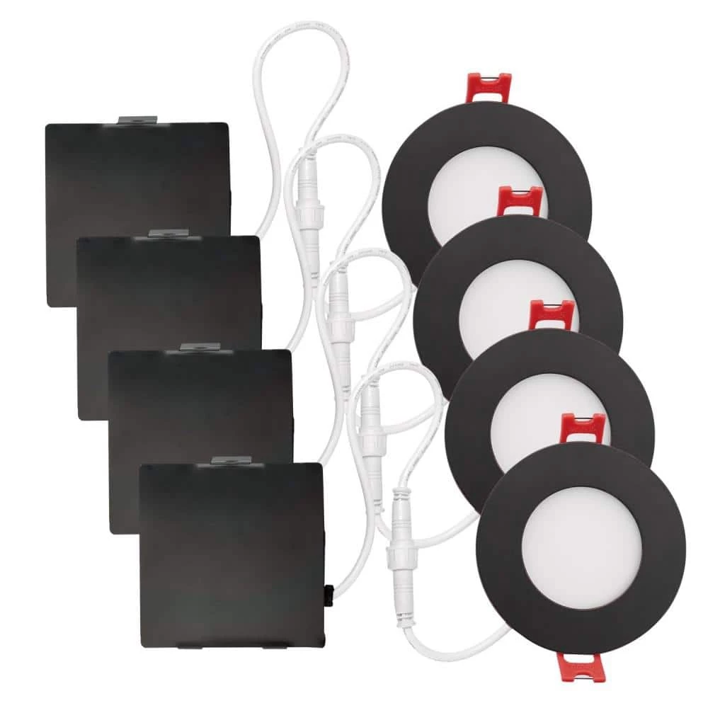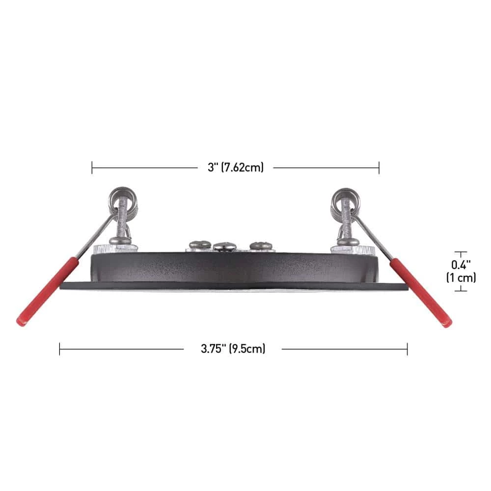 - Easy install slim LED: an ultra-thin profile, integrated LED and a slim junction box will not interfere with your joists or ductwork. Effortless push and click quick connects allows for worry free, easy installation and are the choice of professional electricians. Actual hole size is 3.25-inches. Trim size: 3.74-inches