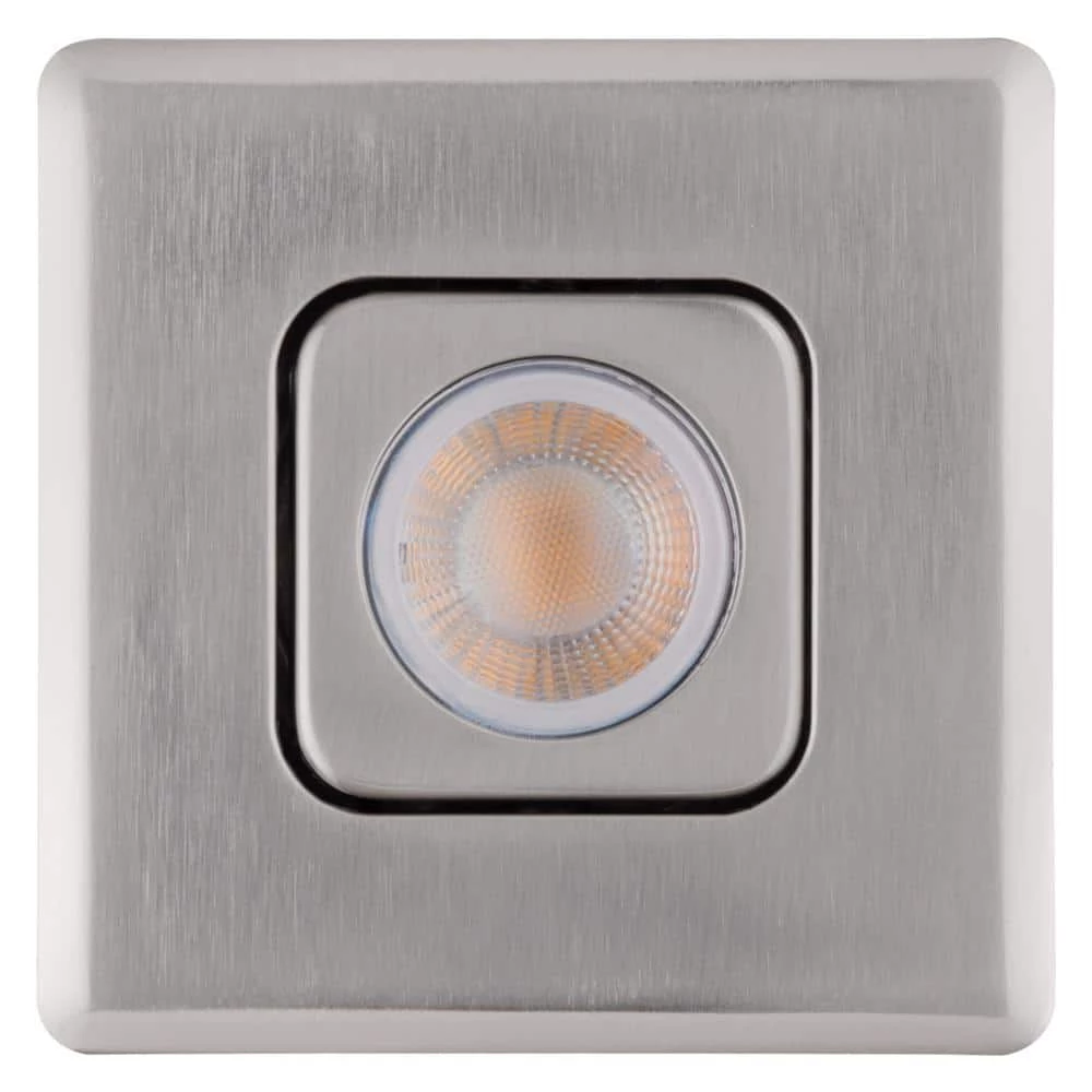 Globe Electric’s 4 in. Die-Cast Swivel Square Trim Recessed Lighting Kit with a brushed nickel finish is the perfect way to brighten up the interior of your home or commerce with style. Featuring patented PUSH-N-CLICK clips which are fully adjustable and extra wide to grip uneven surfaces and provide easy tool-free installation. A swivel light bulb gives you the ability to focus light on specific areas and can be directed for any desired look. An integrated cut-off switch ensures that the fixture will not overheat and can be used with or without an insulation box. Dimmable with a compatible dimmer switch (not included). Requires one 50-Watt halogen or 7-Watt LED GU10 bi-pin base MR16 bulb (sold separately). Cut a 3.88 in. hole for this item, actual decorative trim size is 4.56 in.