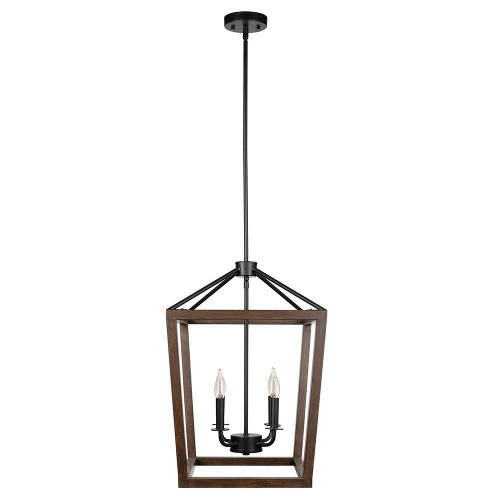 Cleverly mixing industrial black metal with a warm, rustic faux wood, the 4-Light Pendant Light from Globe Electric is a stunning example of mid-century modern design. The geometric cage shade adds texture and style while highlighting the bulb of your choice. Try the included vintage Edison bulbs to complete the mid-century feel or try designer bulbs for a modernized look. The neutral color palette complements your existing decor and looks great hanging alone in your breakfast nook or side my side above your kitchen island.