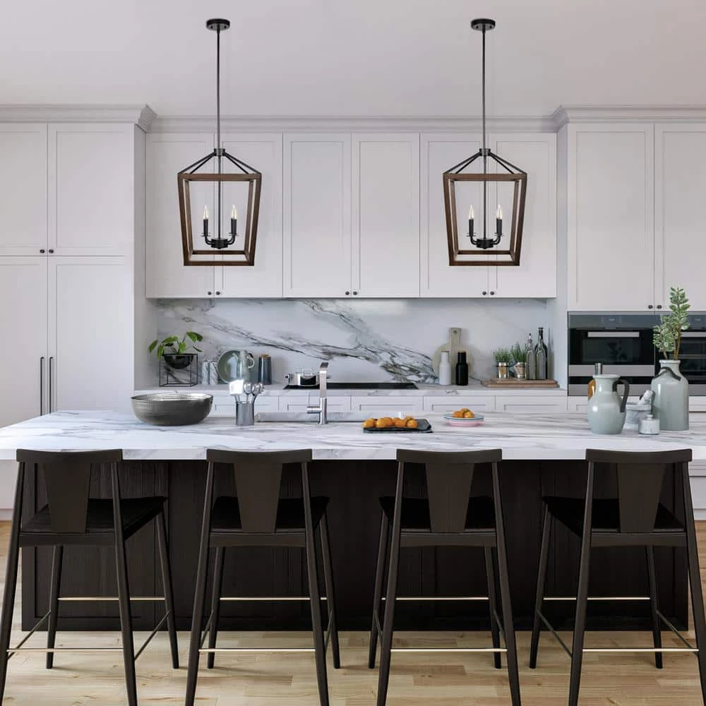 - Mid-century modern: with a faux wood frame and matte black inner frame, the 4-light pendant light offers a stunning mid-century modern candlelight look with the modern convenience of LED bulbs