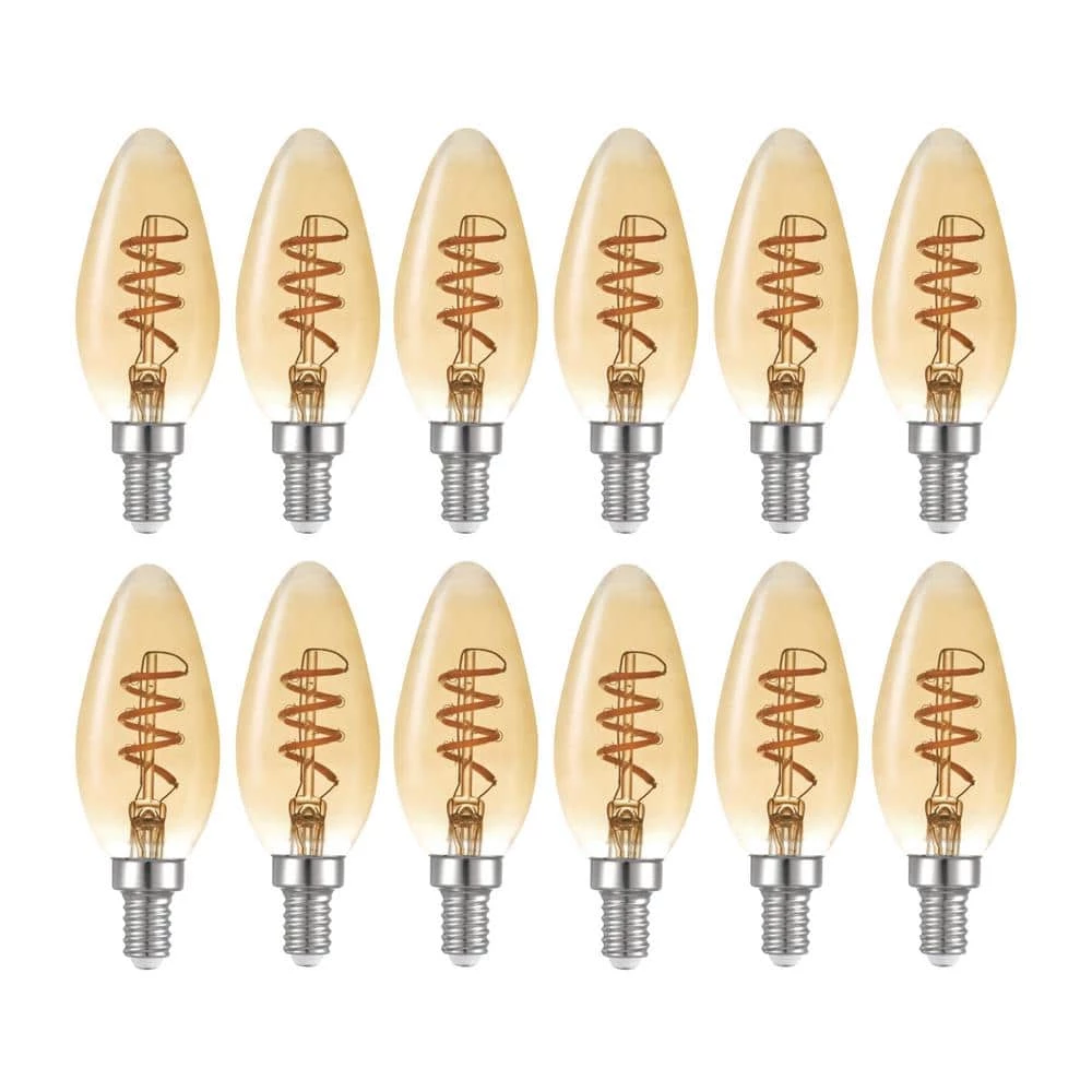 Globe Electric’s 4.5-Watt (40-Watt equivalent) Vintage Candelabra LED Light Bulb is a perfect way to add style and pizzazz to your home. The exposed spiral filament is used to reproduce a vintage Edison design and is ideal for architectural restoration projects, conceptual space or to bring a vintage touch to any room. Since the spiral filament emits a soft warm glow and is dimmable, these bulbs work great as an accent or mood light. Pair it with a clear shade or exposed socket fixture to enjoy its ambient amber glow. This Edison inspired bulb is a Steampunk favorite creating a beautiful work of art out of any fixture and giving your room a vintage film noir aesthetic. Recommended for exposed socket or clear shade fixtures. The candelabra E12 base and B10 shape works with most standard chandelier fixtures and nightlights in your home.