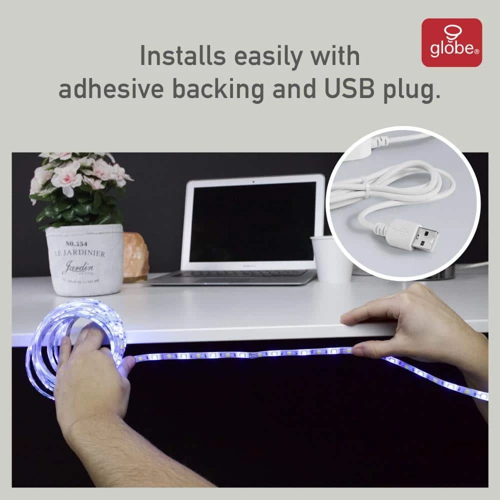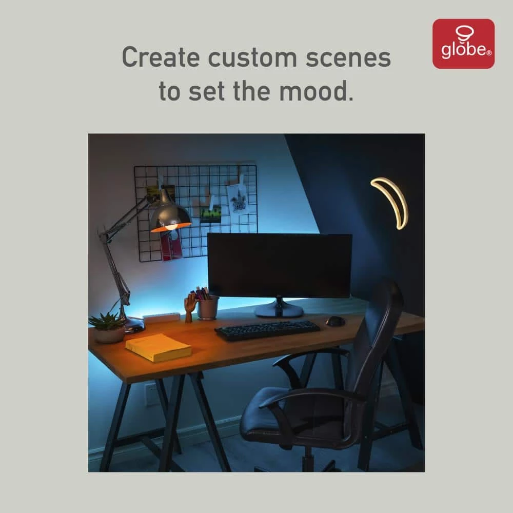 Automate your home with an app on your phone. It’s easy. Simply download the GLOBE SUITE App, sync your smart device and get your home automation started. With Globe Electric’s smart LED strip light, you can have the perfect lighting ambiance for any situation. The self-adhesive strip allows you to place the 6-foot lights wherever you want. The 1.6-meter/3-foot long USB connector cable makes them perfect for dramatic backlighting behind your T.V. or computer screen. Just connect them to a USB port to get them to work. Try them out on your computer desk. Put them on your wall to create a fun party room. You can ask Google Assistant, Amazon Alexa, or Siri to turn them on or to change the color to continuously have the ambiance you want. Creating dynamic lighting for your home has never been so smart.