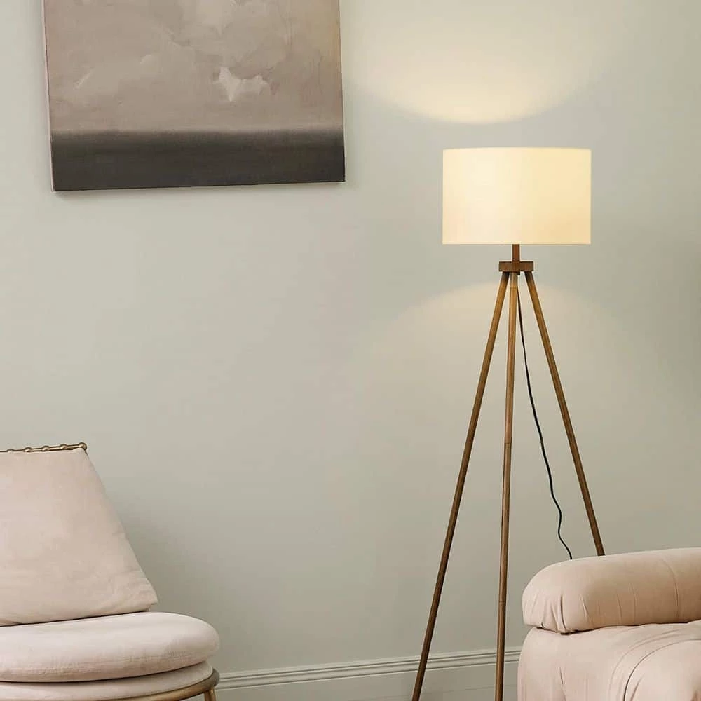 - Cottagecore combining a warm finish with a glamorous tripod base, the shelly 60 in. floor lamp utilizes a white linen shade and faux wood color to complement all decor styles