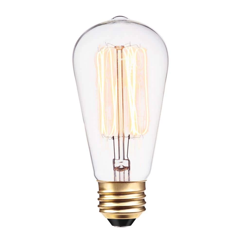 Globe Electric’s 60W Vintage Edison S60 Squirrel Cage Incandescent Filament Light Bulb with E26 base is perfect to position within a clear shade or exposed socket to enjoy its shape and ambient glow. You can easily create a retro vintage look in any room or illuminate your clean modern style with pizzazz. The glowing cage-shaped filament surrounds a central glass support and is crafted to preserve the look of early 20th-century lighting. These bulbs can be dimmed and have a lifespan of 3000 hours.