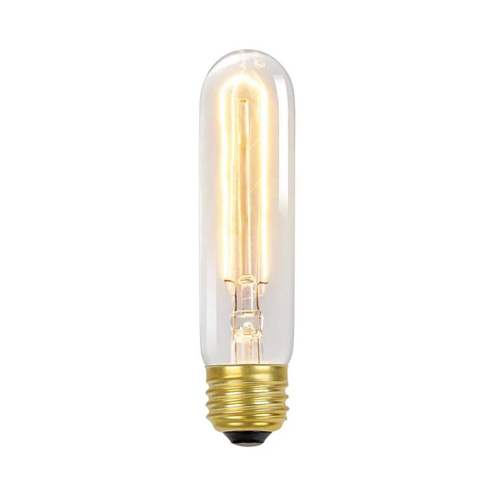 Globe electric’s Incandescent vintage designer 60-Watt Vintage Edison T10 Radio Tube Incandescent Filament Light Bulb with E26 base. In the early days of electrical lighting, inventors such as Thomas Edison tested and retested as they searched for long-burning filaments. In 1890, the filament choice was carbonized cotton. Globe electric’s bulbs have a tungsten filament, which is used to reproduce the single hairpin loop of a vintage design. Position it within a clear shade or exposed socket to enjoy its shape and ambient glow. This Edison inspired bulb is a Steampunk favorite with its glowing cage-shaped filament surrounding a central glass support. Crafted to preserve the look of early 20th-century lighting. Please note, these bulbs are not as bright as modern bulbs of the same wattage and are recommended for exposed socket fixtures. Glass has a goldish amber tint which can vary in degree from light to medium. These bulbs can be dimmed and have a lifespan of 3000 hours.