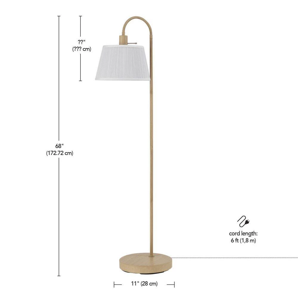 The timeless Maris Floor Lamp by Globe Electric is the perfect accessory. With a classic white fabric shade and light faux wood pole and base, this stunning lamp complements any decor. The slim profile and 68 in. H is ideal for a living room, bedroom or dining room and can be placed anywhere your heart desires. Thanks to its adjustable arm feature, you can customize where the light shines by simply moving the arm in the direction you choose. An on/off socket switch is super convenient while the s6 ft. cord ensures that you can place the Maris Floor Lamp wherever you want – even if an outlet is nowhere near-by.
