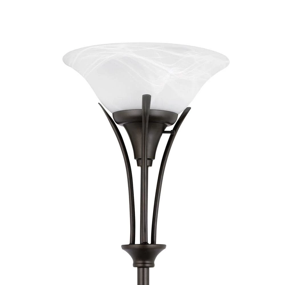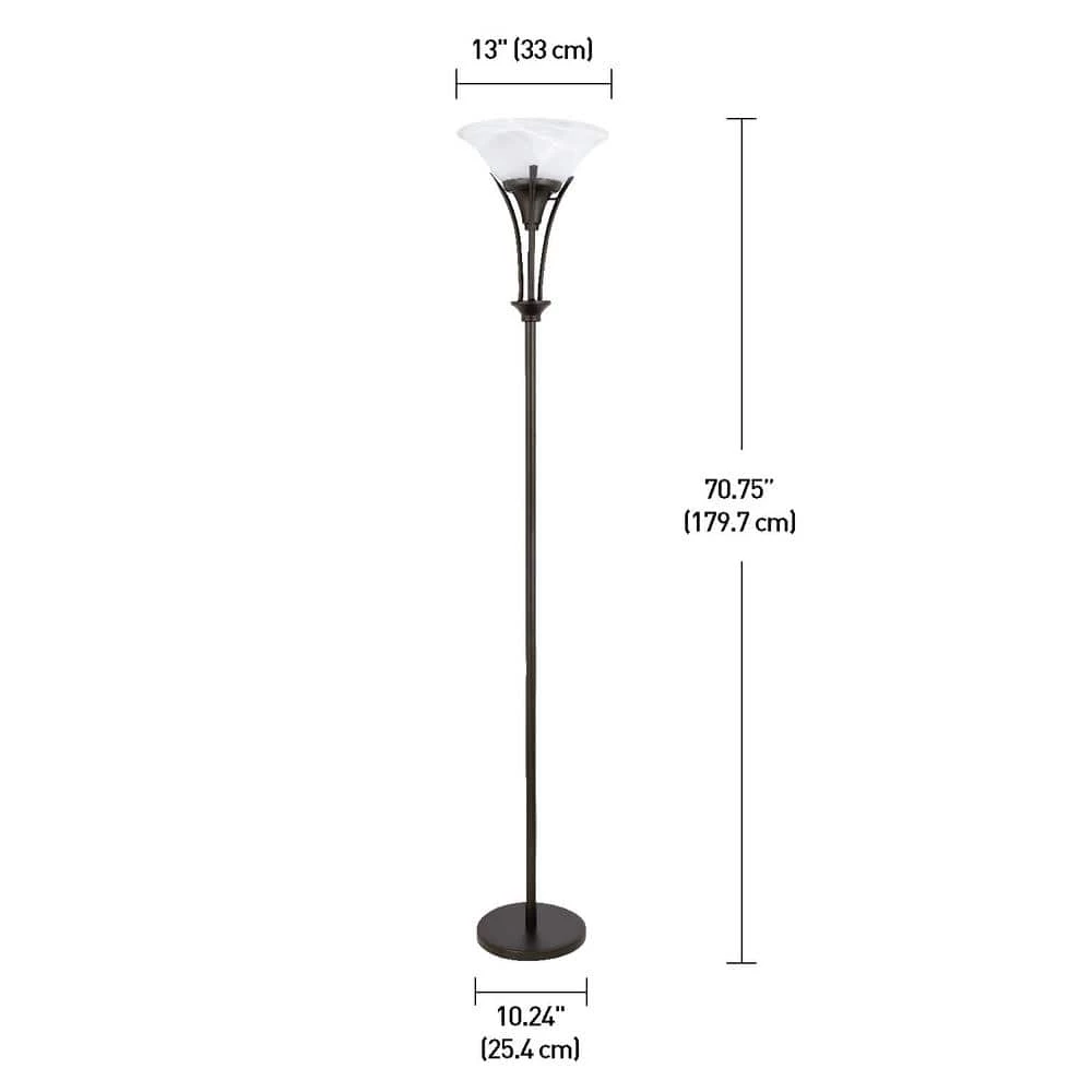 Globe Electric’s gracious Gatineau Floor Lamp is as beautiful as the area of Quebec it is named after. The stunning alabaster glass shade is reminiscent of moving water and held up by well-crafted torchiere arms that resemble an elegantly opening flower. The rich dark bronze finish complements a variety of decor styles making this a truly versatile floor lamp. The rotary switch allows three levels of light – low, medium and high – so you will always have the perfect light for any space. Sitting at almost 6 ft. tall, the Gatineau Floor Lamp is a perfect accent piece. Pair this with a Globe Electric LED bulb to keep your fixture energy smart. Requires one E26/medium base A21 bulb (150-Watt maximum, sold separately).
