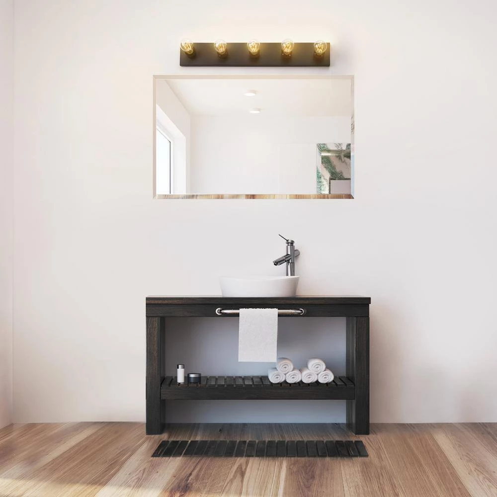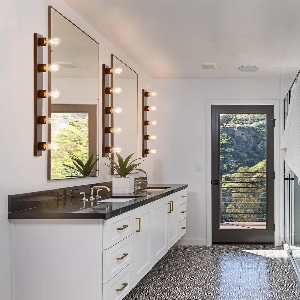The Alden 5-Light Vanity Light Fixture from Globe Electric offers stunning modern glam style for contemporary, classic, Japandi, stylish, well-decorated homes alike. The quintessential design creates old-world style in a modern glam way. Use one above the mirror in your bathroom, place one on either side of the mirror or surround your mirror in your dressing room for a stylish space that enhances your senses and creates all over even lighting. Use vintage Edison bulbs in your light to add vintage appeal or use modern designer bulbs to create different lighting designs. Smart bulbs and colored bulbs can help create unique atmospheres and will bring the perfect finishing touch.