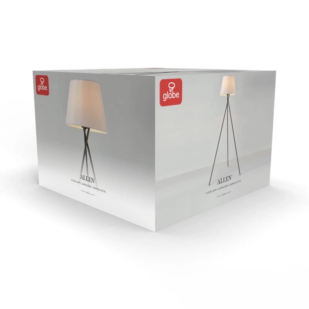 With a tripod base, matte black finish and white linen shade, the Allen Floor Lamp by Globe Electric is the perfect lamp for any room in your home. The matte black finish complements any decor while the white linen shade offers a diffused light that brightens up your place with ease. The design and color combination make it a transitional light that brings style into your home. Try using a higher kelvin 60-Watt bulb for a brighter task light or a lower kelvin 40-Watt bulb for a warmer light that creates ambiance.