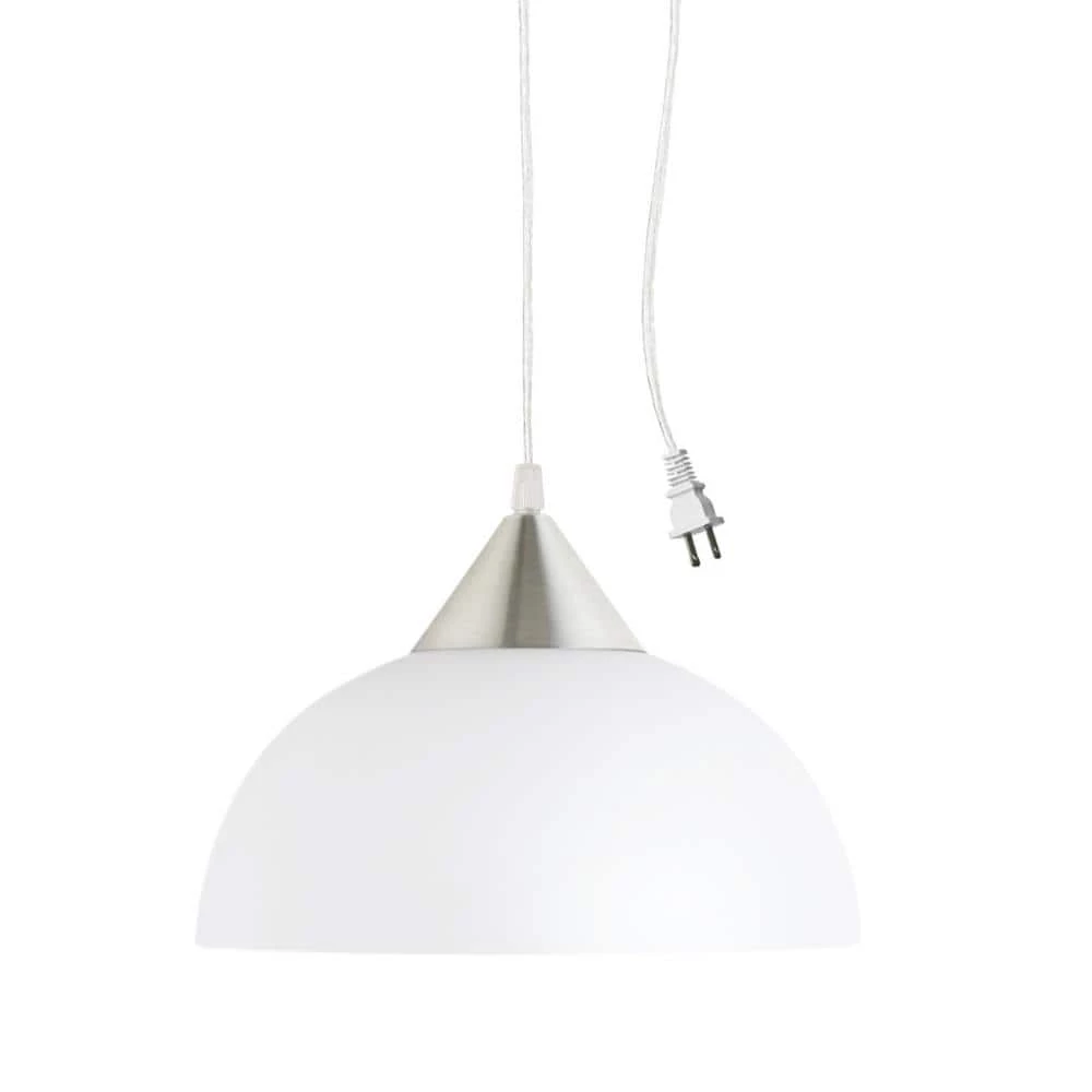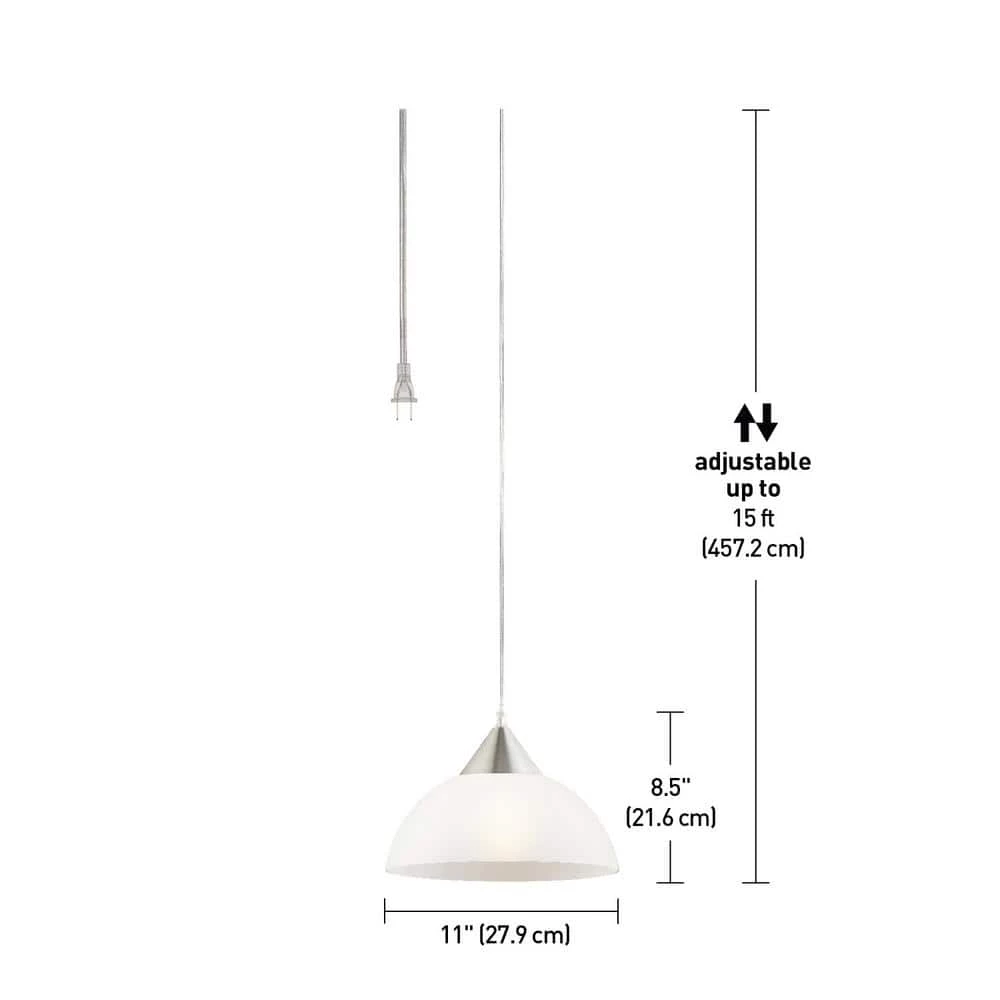 Blending with all decor styles, the Amaris 1-Light Plug-In Pendant can be placed anywhere in your home. With a frosted plastic shade and brushed nickel accent, a timeless sophistication and contemporary charm is brought to any space. The 15-foot cord lets you adjust the hanging length and position without worrying where your wall socket is placed. Ideally suited for living rooms, kitchens, and dining rooms you can use the Amaris 1-Light Pendant anywhere you need a creative light.