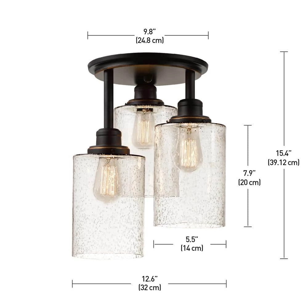 Globe Electric’s Annecy Semi-Flush Mount Ceiling Light is a stunning light that would be great for an entranceway or main hallway so it can be seen when walking into your home. The oil-rubbed bronze finish pairs perfectly with the weathered look of the seeded glass shades to make this piece the epitome of rustic design. The clear glass means you can update the look of the fixture at any time simply by changing the bulb. Check out Globe Electric’s assortment of designer vintage Edison bulbs to create a look that is truly your own. Includes all mounting hardware for quick and easy installation and requires 3 E26/medium base 60-Watt bulbs (sold separately).