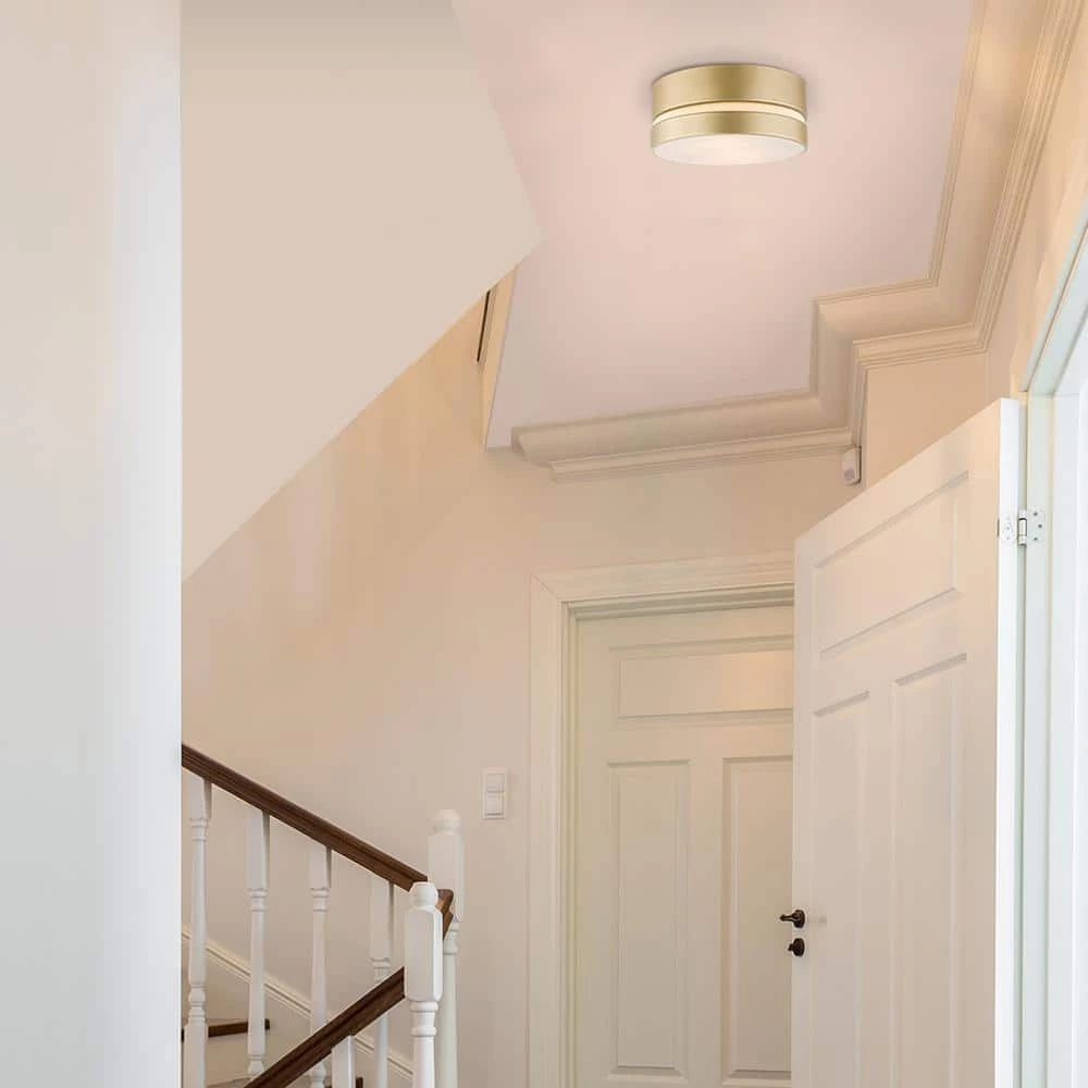 Statement lighting doesn’t always mean being the center of attention. Minimalist modern flush mount lighting unobtrusively hugs the ceiling but can be just as striking as center-stage chandeliers and pendants. There are many different versions of spectacular ceiling lights but none stand out as much as the Novogratz x Globe Aurora Flush Mount Ceiling Light. With a modern Smithfield design – a grand yet shallow rounded body – this flush mount produces a halo of filtered light that is perfect for an entryway or bedroom. The soft gold finish adds a playful glam flair to your space yet the frosted shade softens the entire look. Decorate with the Novogratz and Globe Electric – lighting made easy.