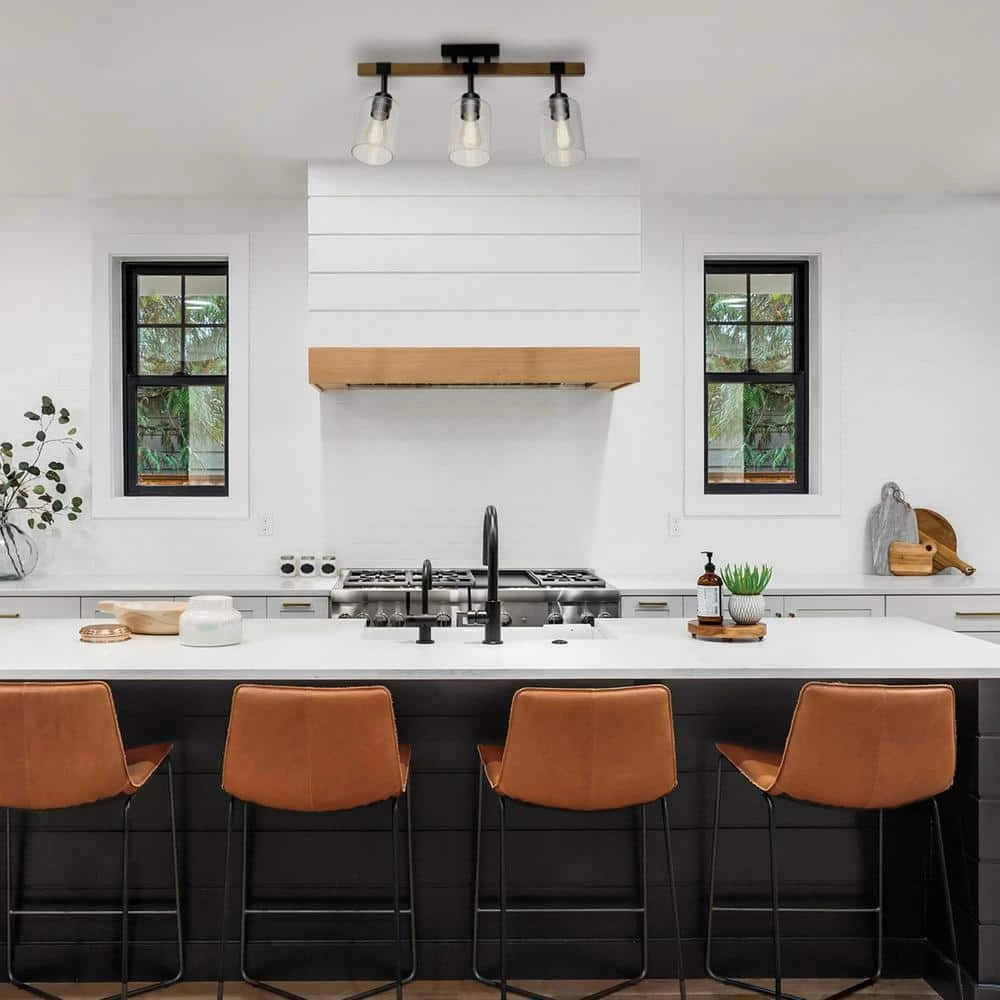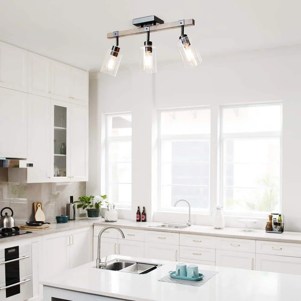 - Modern farmhouse: the warm dark wood finish and matte black accents of the Austin 3-light track bar is perfect for bringing an inviting yet modern turn-of-the-century farmhouse look to any space
