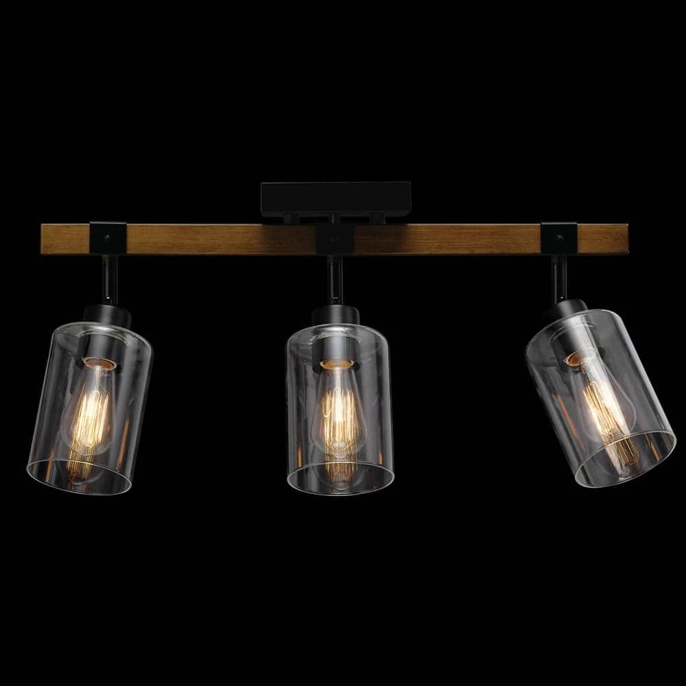 Add a warm finishing touch to any decor with the Austin 3-Light Track Light by Globe Electric. Mixing a warm dark wood finish with matte black metal accents, this 3-light track bar is a stunning way to bring an old-world feel to your living room, dining room, study or hallway. The minimal 4.75 in. W creates a statement while offering ambient lighting throughout your home. Each track head can be adjusted to point the light in the perfect direction while clear glass shades finish the design and showcase the bulb of your choice. Try vintage Edison bulbs to complete the modern farmhouse feel or try round bulbs for a completely unique look.
