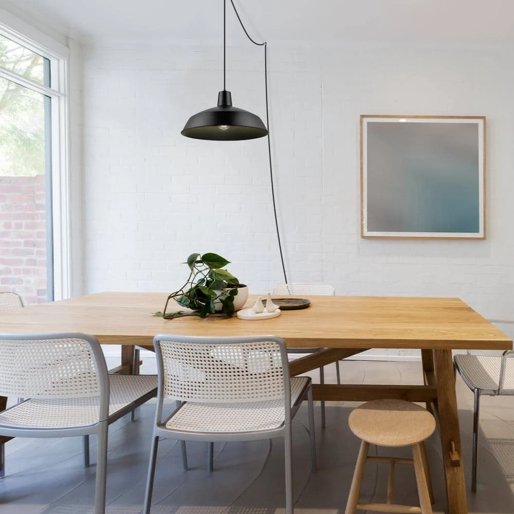 With its matte black finish and classic profile, the Globe Electric Barnyard 1-Light Plug-In Pendant has a cool, industrial feel, like that found in large warehouses, artists’ lofts, or retro-style barber shops. The neutral color blends with all decor styles and the 16-inch size can really make a small space feel larger and uniquely designed. But that’s not where it has to end. You can use more than one of these pendants throughout a long hallway or a large room – hang them at different heights to create a dynamic look.