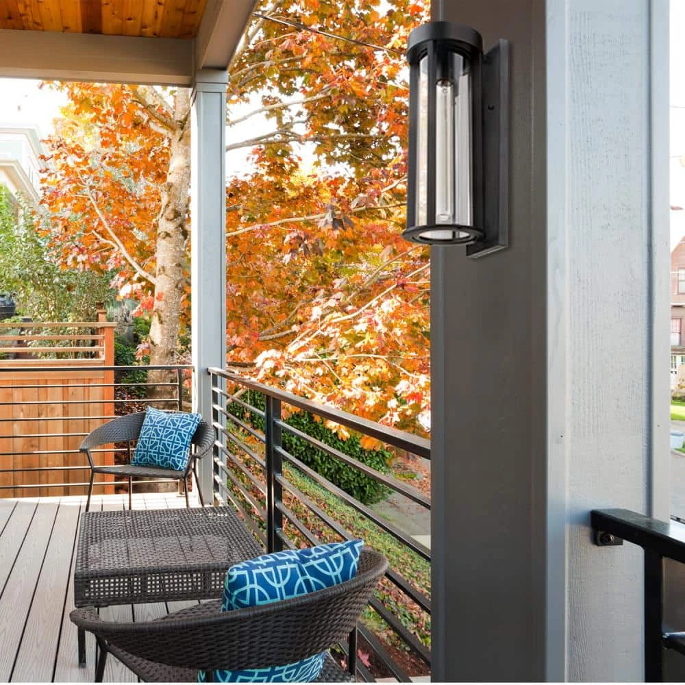 Exhibiting classic charm, the Beckham Wall Sconce is perfect for casting a glow over your patio, in your living room and beyond. The matte black finish and cylindrical glass frame offer a modern look while the clear glass shade and included Vintage Edison bulb create a Vintage appeal. With a large 17 in. size, this is an ideal piece for flanking your entryway or to hang on your patio or balcony.