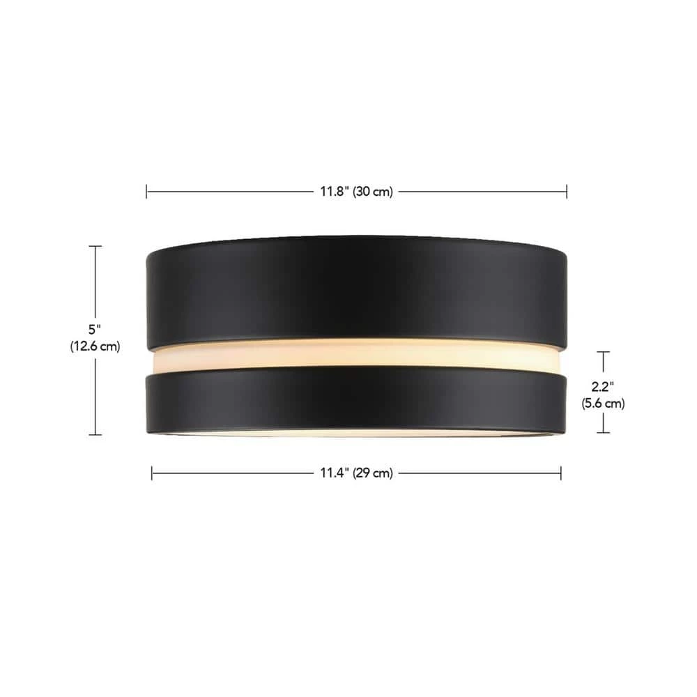 With streamlined, elegant appeal, the Belamy 2-Light Flush Mount Ceiling Light is the ideal choice for contemporary and transitional homes alike. A classic lighting shape is brought to life with a modern layered design expertly highlighted with a matte black finish. With two 60-watt bulbs behind it, the frosted glass shade provides the perfect light for board game nights in the living room or for prepping your favorite meal in the kitchen. A stunning center cutout doesn’t only provide extra light, it’s a dynamite visual addition too! The 11-inch width and 5-inch height combined with the metallic finish complement all decor styles making the Belamy Flush Mount an ideal fixture for many different areas of your home.