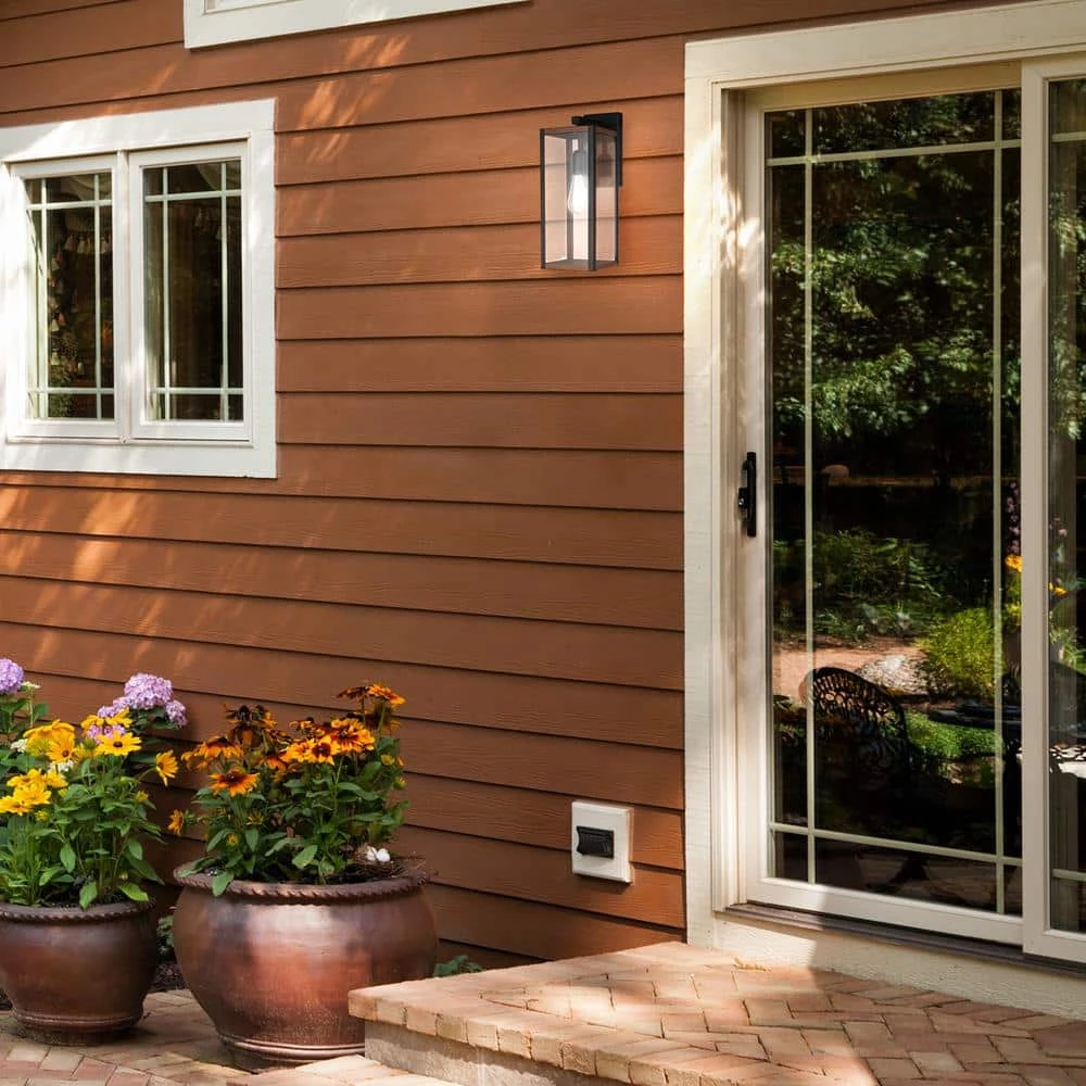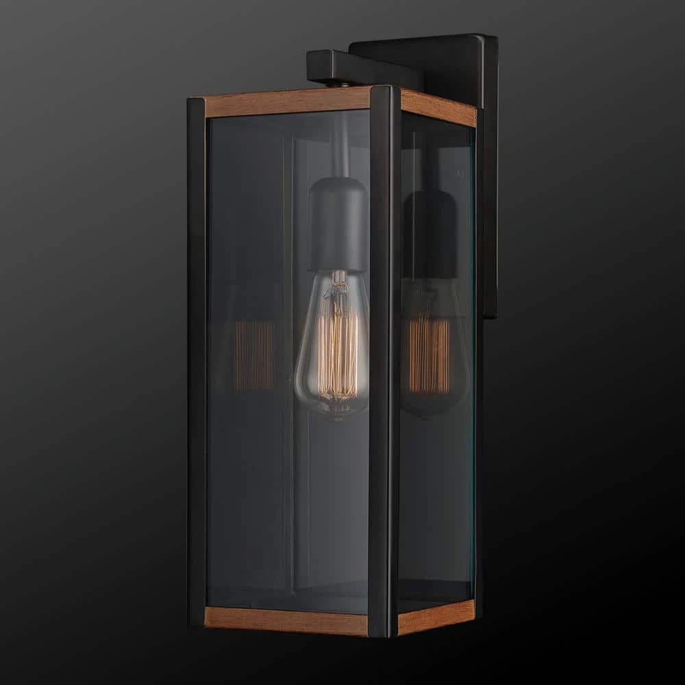 The clean lines, clear glass panels and faux wood accents of the Bowery Outdoor Wall Sconce creates a modern light with a farmhouse design feel. A vintage-inspired bulb would add the right embellishment to make this-piece truly a work of art. The matte black finish complements all decor and showcases your bulb in just the right way. This-piece has such clean lines you can use it indoors too. To create a finished look, pair this-piece up to have symmetry at your front door.