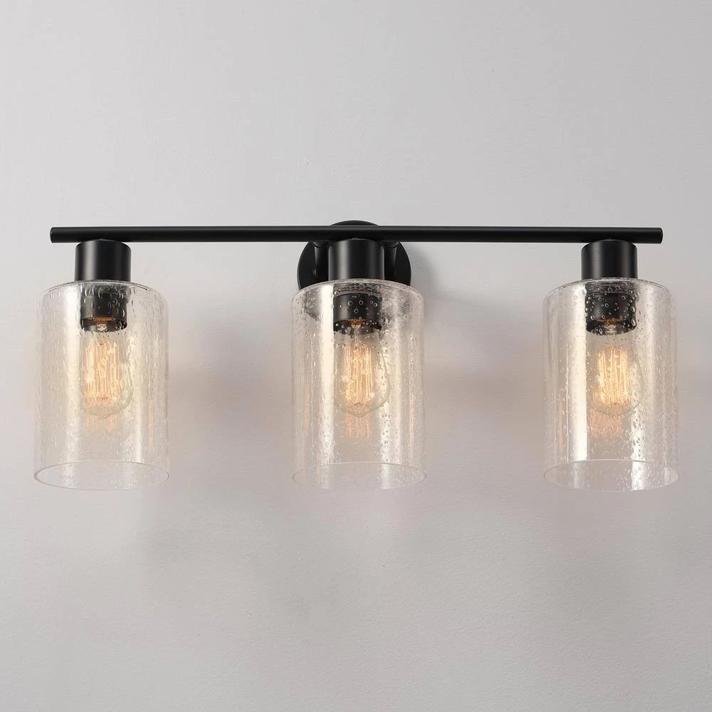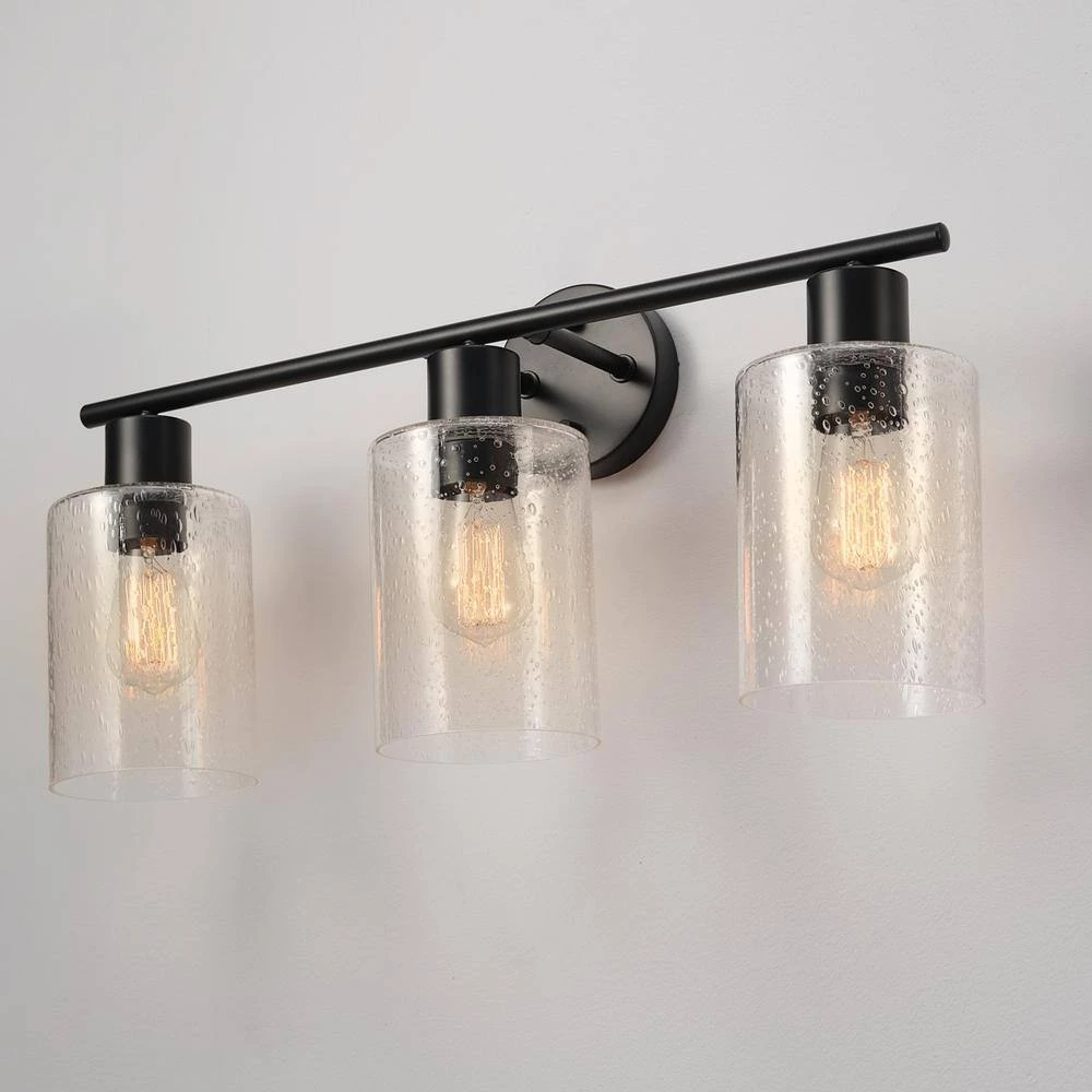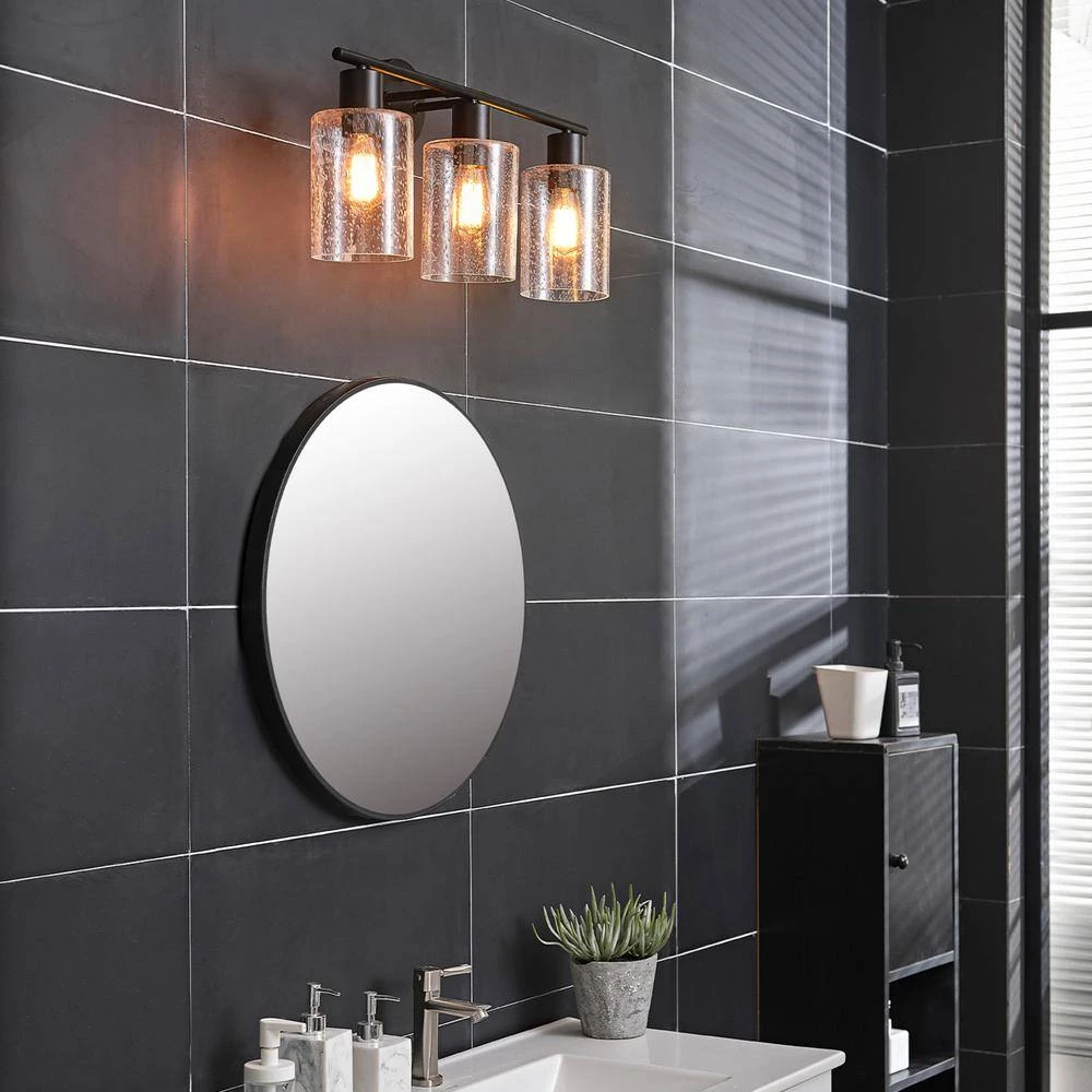 - Minimalist design: with a neutral matte black finish and weathered seeded glass shades, the bristol bathroom set is the epitome of minimalist design to complement any decor