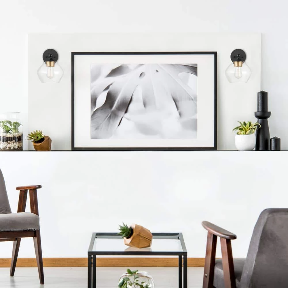 - Clear glass shade: the clear glass shade is perfect for changing the look of your wall sconce – change the bulb, change the look; try a vintage Edison bulb for an effortless mid-century modern look or use a designer bulb for a completely different feel