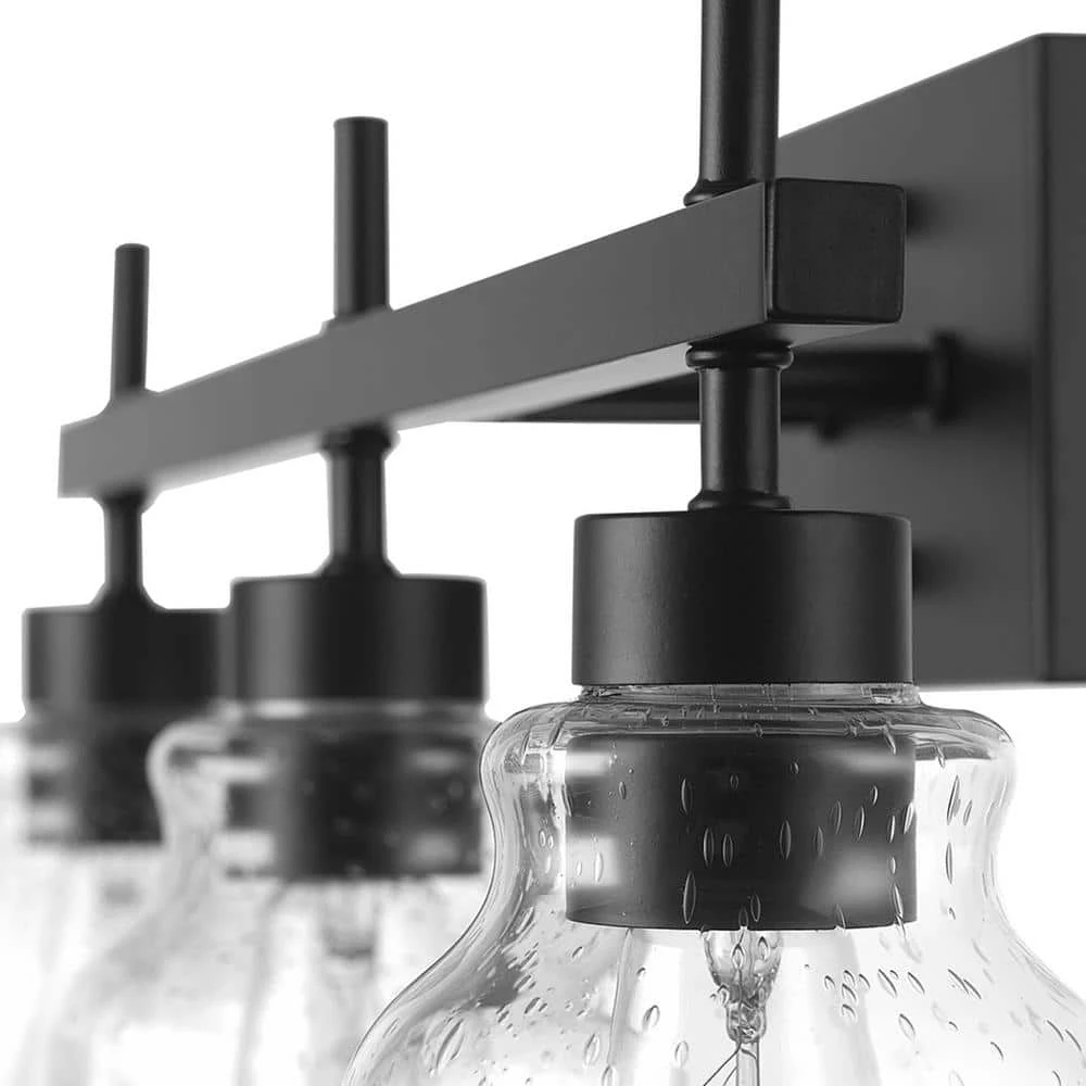 - Upscale industrial design: a matte black finish and modern design combine with unique urn shaped seeded glass shades to create a stunning blend of modern and industrial design