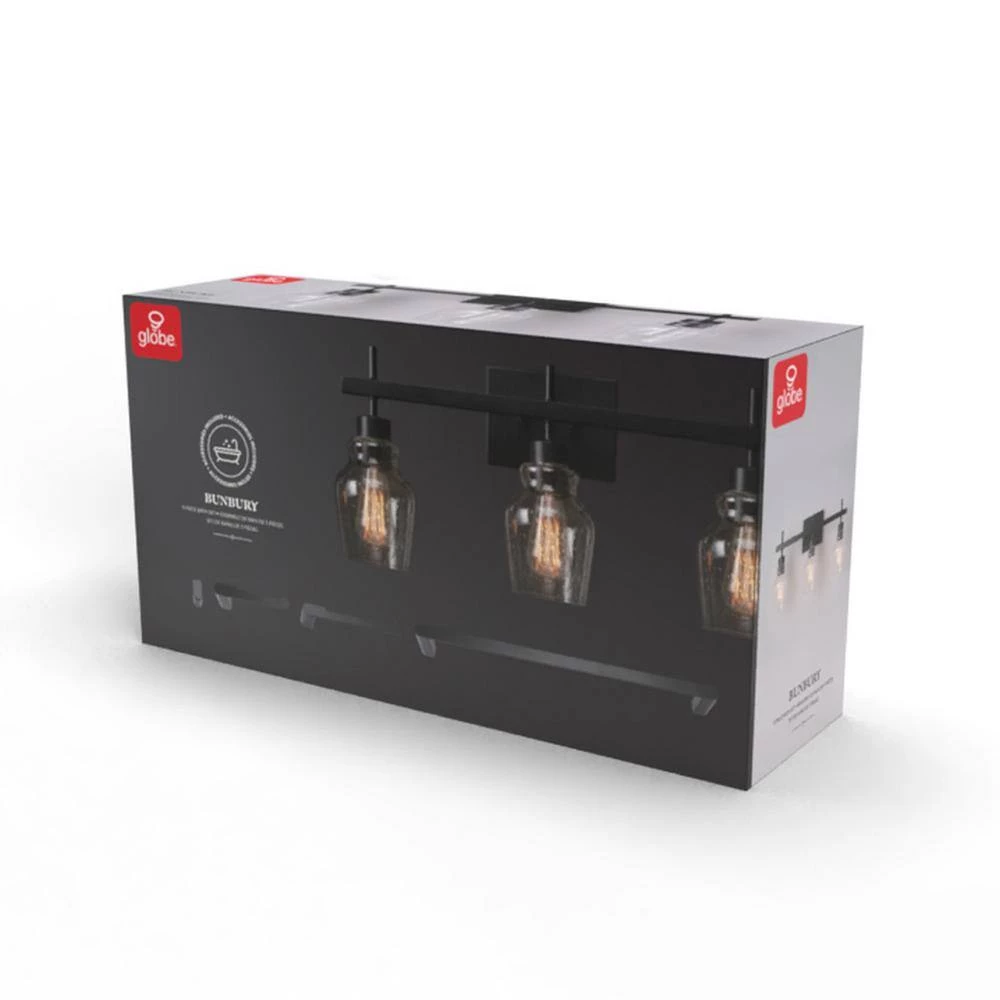 Globe Electric’s Bunbury 5-Piece All-In-1 Bathroom Set is a stunning way to update your bathroom with one easy step. Complete with a towel bar, towel ring, robe hook, toilet paper holder and 3-light vanity light, the Bunbury Set has an upscale industrial design that creates a streamline and welcoming update for your home. with seeded glass shades and a matte black finish, the 3-light vanity light offers ideal stylish lighting. While the pieces complement each other, you can split this set up and use them throughout your house. Think creatively, each item can have a different function. Try the towel ring in your kitchen for your potholders, the robe hook in your living room as an art hanger and the towel bar in your closet as a shoe holder. Listen to your inner interior designer. Think outside the box.