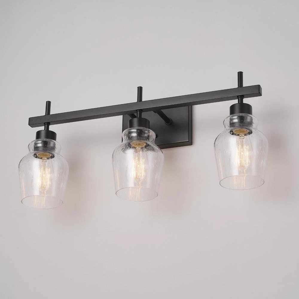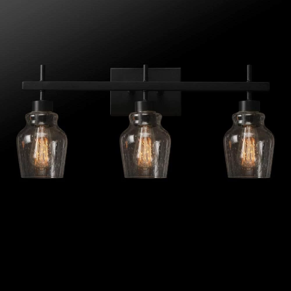 - All-in-1: update your bathroom easily with a matching 3-light vanity fixture, towel bar, toilet paper holder, towel ring and robe hook with a calming matte black finish