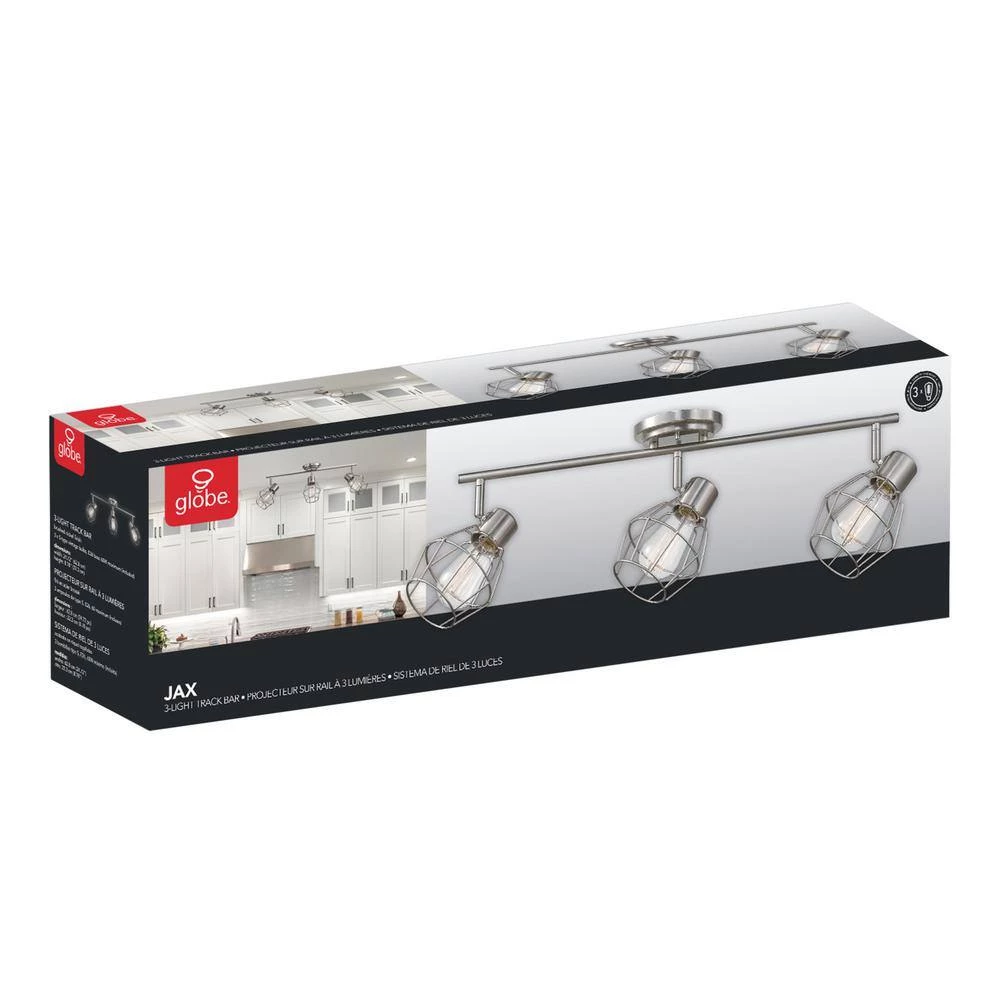 Giving off a cool, urban vibe, the Cedric Collection by Globe Electric utilizes cage shades and modern lines to create inspired industrial designed lighting. With a round canopy and straight track light bar, these lights are the perfect accessory to any room. The adjustable track heads lets you point the light where you need it most so you can decorate your room with light. Three vintage Edison bulbs are included with the Cedric 3-Light Track Light in brushed nickel making it an ideal light to install and enjoy quickly.