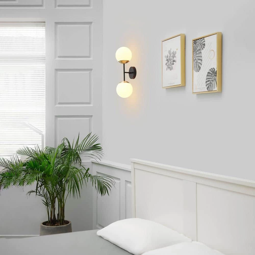 A classic shape highlighted with matte black and antique brass, is expertly finished with matte opal glass shades to offer a stunning example of the grandmillennial style trend. The Celestia Wall Sconce by Globe Electric embraces a traditional design while presenting it in a fresh way and is best suited for a living room, dining room, powder room or bedroom. The soft pleasant glow is perfect ambient light, yet radiant 60-Watt bulbs create a great task light for your home. Completely versatile, you can place this wall light horizontally or vertically to create the ideal lighting position for any area.