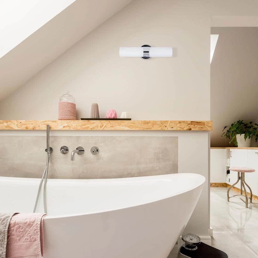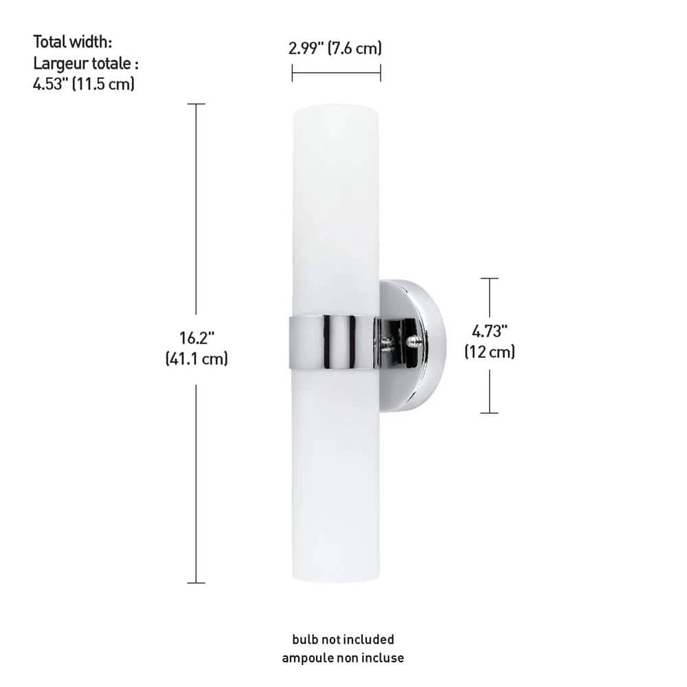 Blending with all decor styles Globe Electric’s Champagne 2-Light Exclusive Vanity Fixture can be placed anywhere in your home. The chrome finish with white opal glass brings a timeless and classic feel to any space. Fully dimmable with compatible dimmer switch, you can create lighting ambiance and different moods easily. With the ability to be mounted either vertically or horizontally, you can customize the position for your specific look and lighting desires. Includes all mounting hardware for quick and easy installation and requires two 60W B10 bulbs (sold separately).