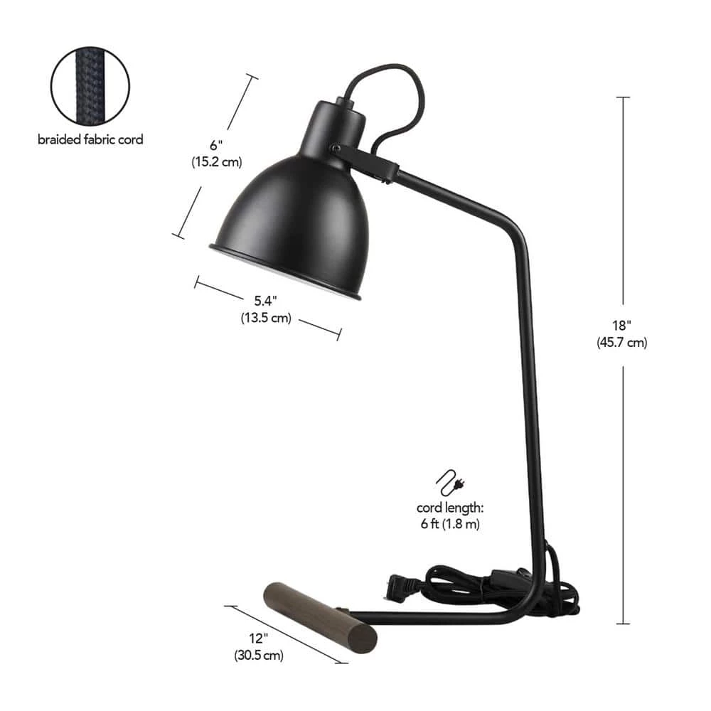 Great lighting sets the mood of a room whether it be your office, home office, bedroom or living room decor. The Cole 18 in. Desk Lamp by Globe Electric offers a mid-century modern design to complete any decor style. A stunning matte black shade sits atop a t-shape leg with a faux wood accent base to create the perfect mid-century look. The lamp head pivots up and down to complete a functional design making this an ideal lamp for any space.
