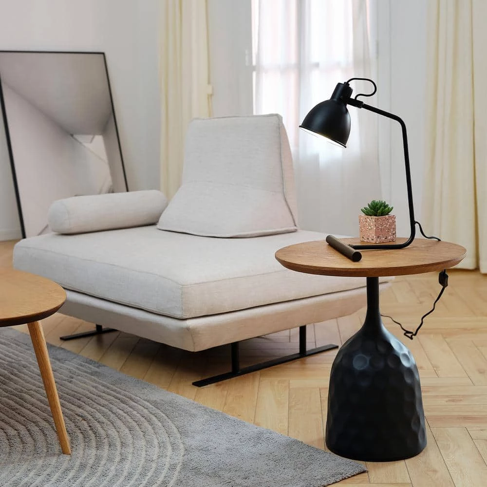 - Light your home in style: matte black finish, faux wood accent, trendy shade, functional design – this lamp will drench your home in style for-years to come