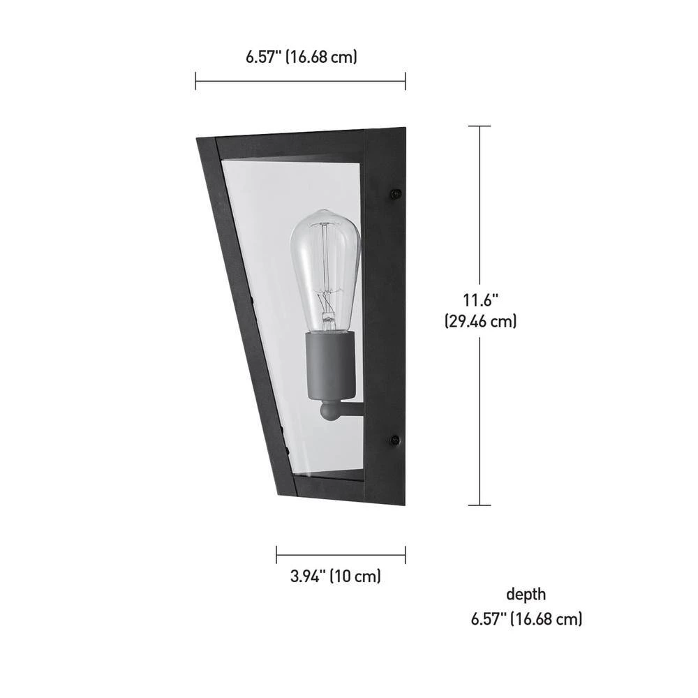 Upscale your space with the beautifully designed Columbus wall sconce. The stunning bronze finish accents the uniquely mid-century modern design to add a touch of style to your home. Sitting at just 6 in. W and 11 in. H, this sconce works perfectly outside as well as inside. The clear glass panes lets you illuminate your entranceway, kitchen or bedroom easily and brightly.