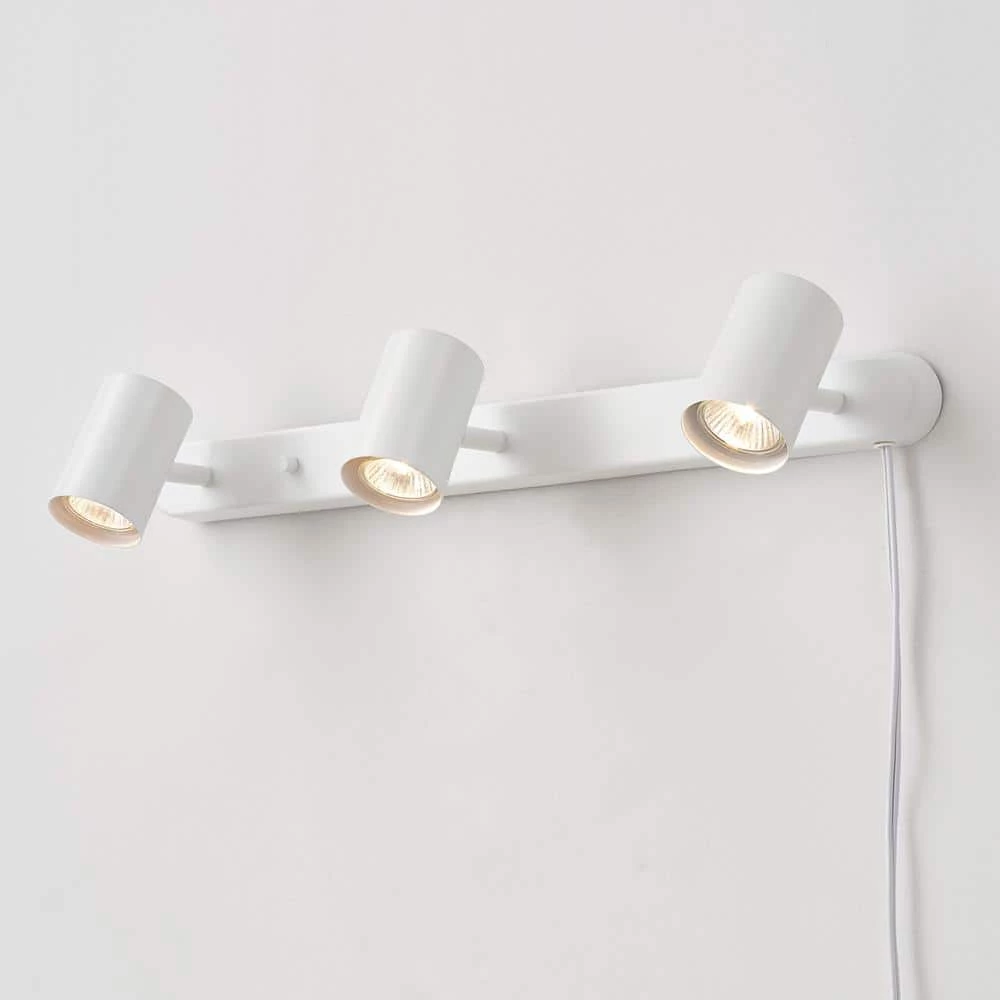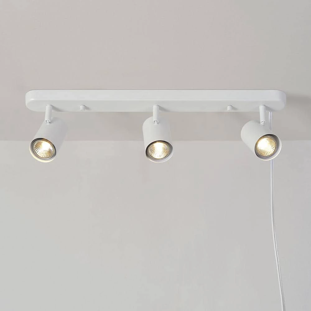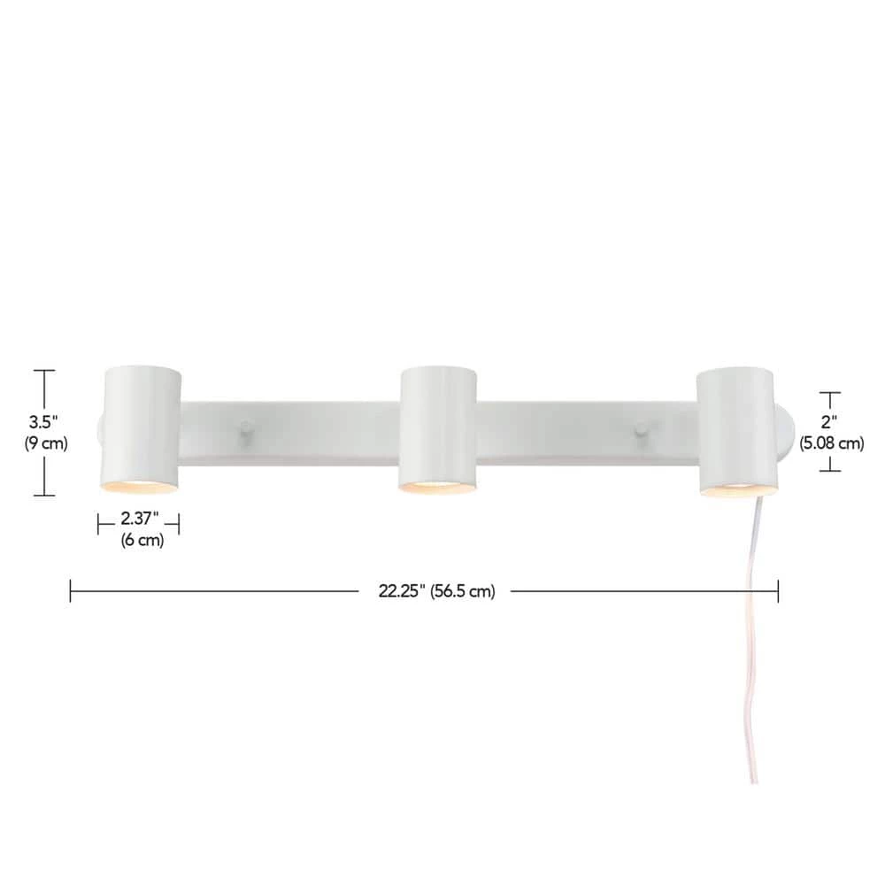 With a cord that plugs directly into a standard wall outlet, and an in-line on/off switch, the Dale 3-Light Track Light is an ideal lighting solution for renters, apartment living or any room without a ceiling junction box. The clean matte white finish and contemporary look complements your existing decor while 3 pivoting track heads provide complete lighting design versatility. Place it on your ceiling or wall to complete your room design.