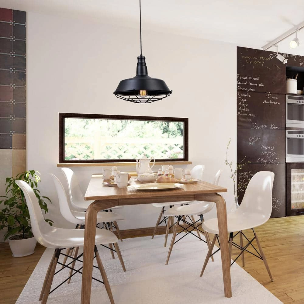 - INDUSTRIAL DESIGN: a matte black finish and caged shade allows this pendant to fit all different types of decor from industrial and vintage to traditional and contemporary – a perfectly versatile piece for all your lighting needs