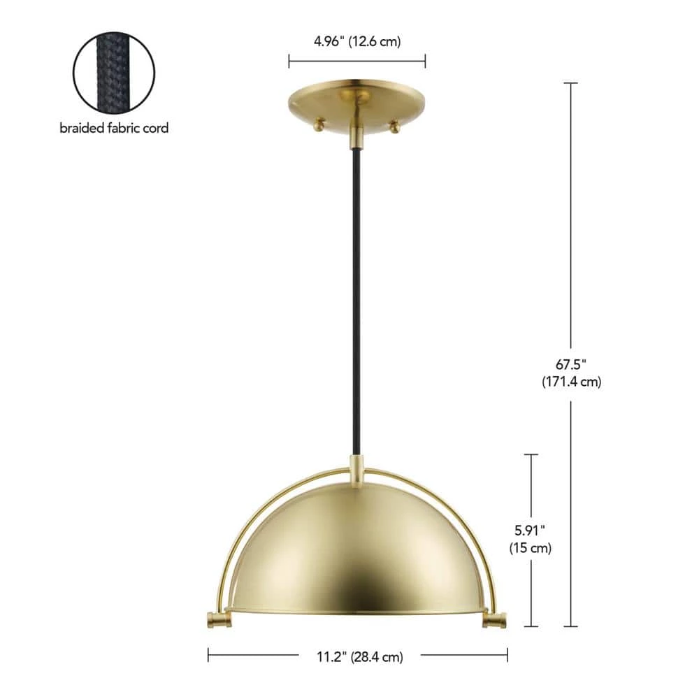 The wide brim shade and overall design of the Dolores Pendant Light by Globe Electric is a shining example of modern glam design. The glamorous matte brass finish is modernized with a unique bar accent and exposed hardware. The black patented fabric hanging cord is adjustable so you can customize the light to your desired length. It’s super easy to change to look of your fixture by adding a unique bulb. Try a vintage Edison bulb for a classic vintage look or use a designer bulb for a modernized design.