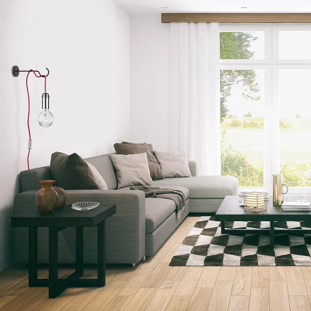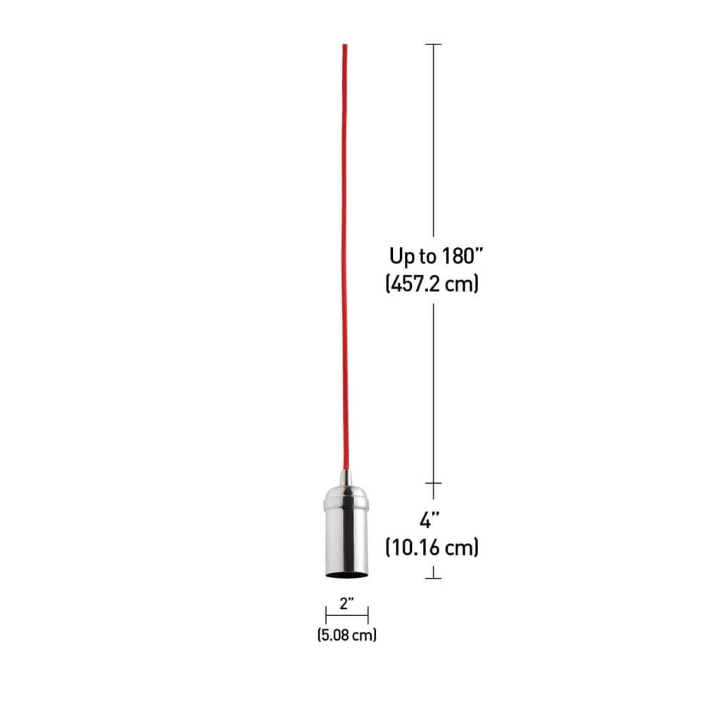 Globe Electric’s simple chrome finish Edison 1-Light Plug-In Mini Pendant with a designer red fabric cord is a great spin on a classic design. The exposed chrome finish socket creates a modern industrial look. Pair it with a vintage inspired bulb for a truly unique design. Simple and inviting, this piece is great for any space in your home. Hang it alone or pair it up to create a variety of different long lasting looks. Includes swag hooks for quick and easy installation and requires one 60W E26/medium base bulb (sold separately). Check out Globe Electric’s selection of vintage inspired bulbs to complete the look.