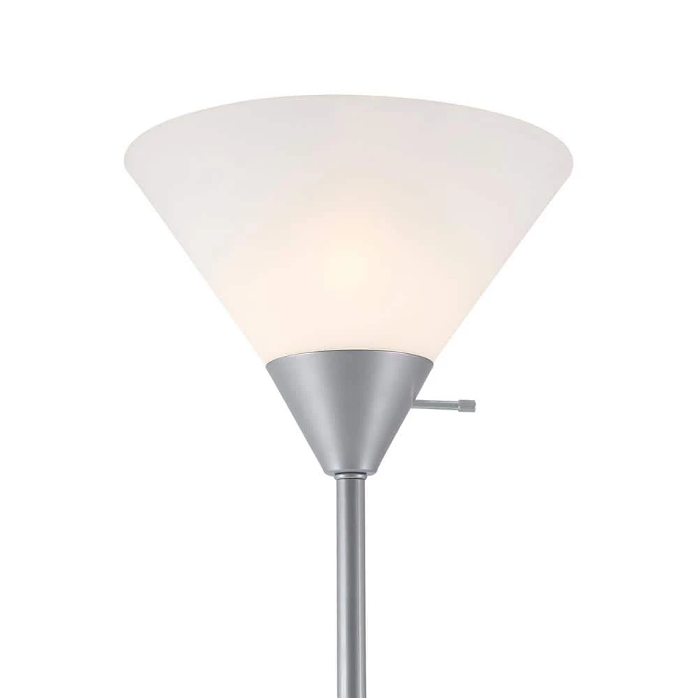 The silver finish and white shade of the Elliott Floor Lamp brings a modern contemporary style to life. Sitting at 72 in. height with a sturdy 10 in. base, Elliott takes up very little floor space but provides a lot of light. The frosted shade ensures a great glow. Perfect for complementing all decor styles, the silver finish adds a modern feel and brings your room to life.