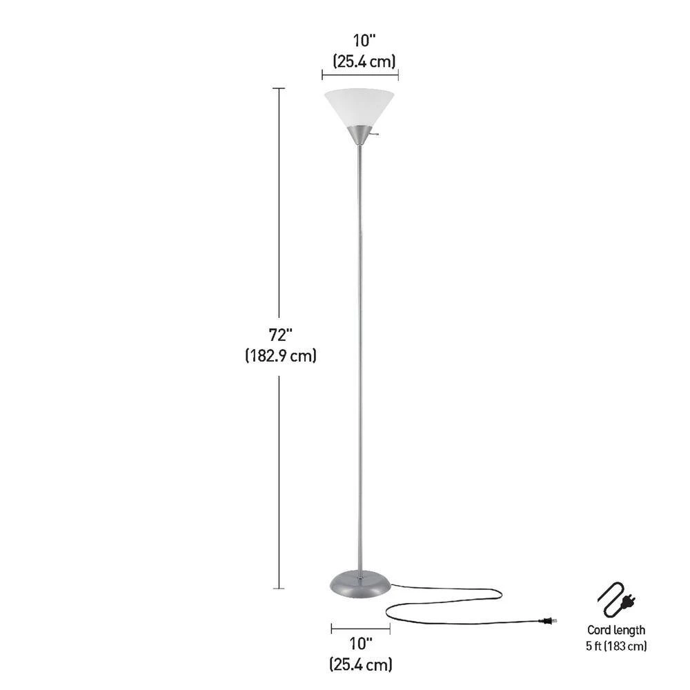 - Frosted shade: the white frosted plastic shade blends perfectly with the torchiere style lamp to create a warm light spread