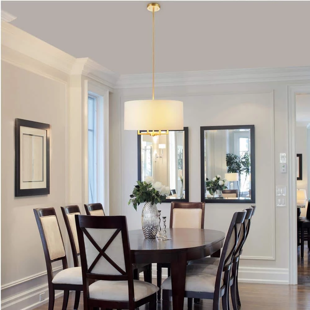 Ceiling lights can not only light up your whole room – they’re also a great way to show off your personal style. Utilizing a contemporary beige fabric shade and a unique frame construction, the Emery 4-Light Pendant offers a glamorous design with a modern feel. The beige fabric complements all decor elements while providing a warm light even when using a bright white light bulbs. Ideal for a dining room, entryway or bedroom, this light will entice your senses as well as brighten up your space.