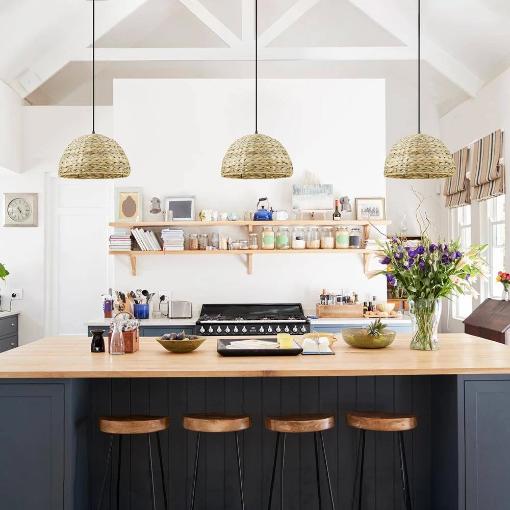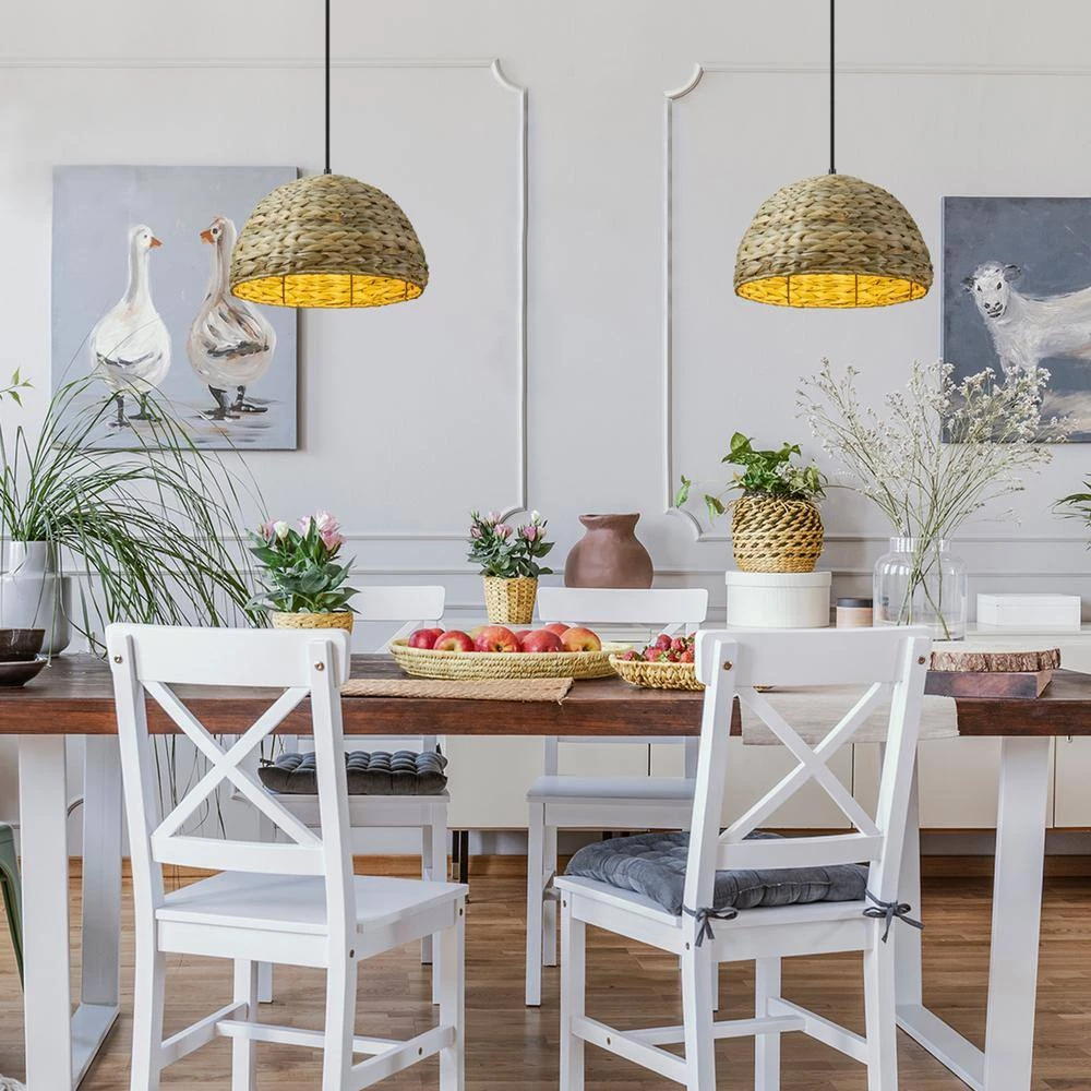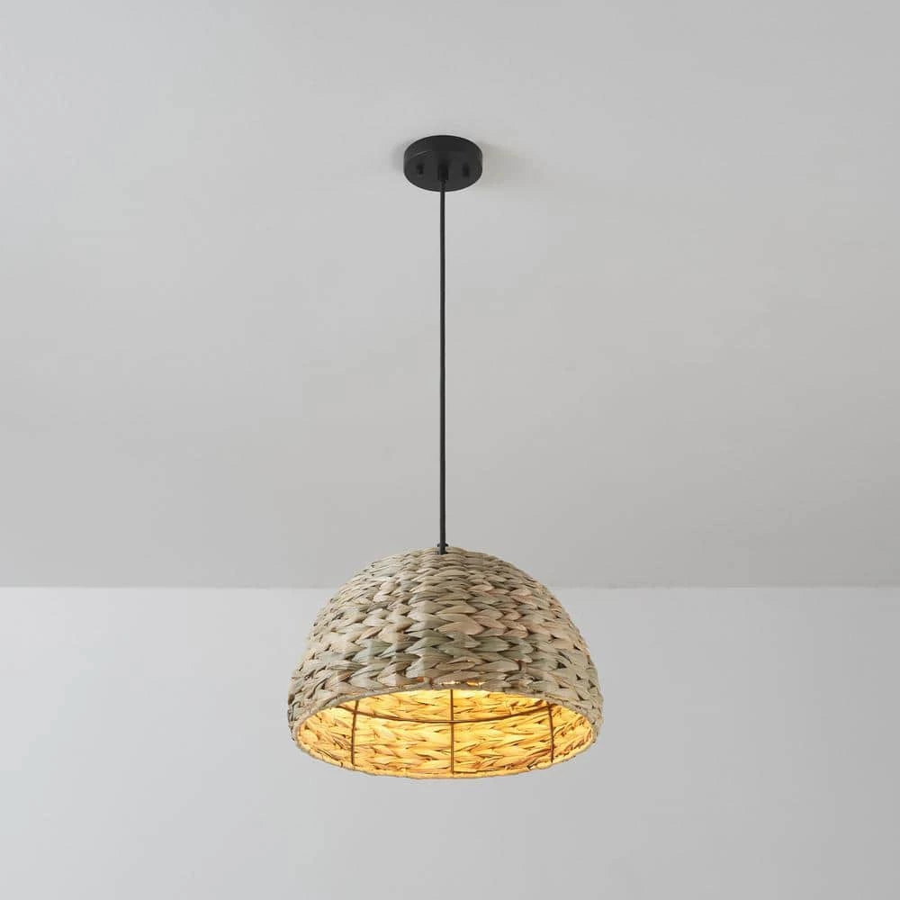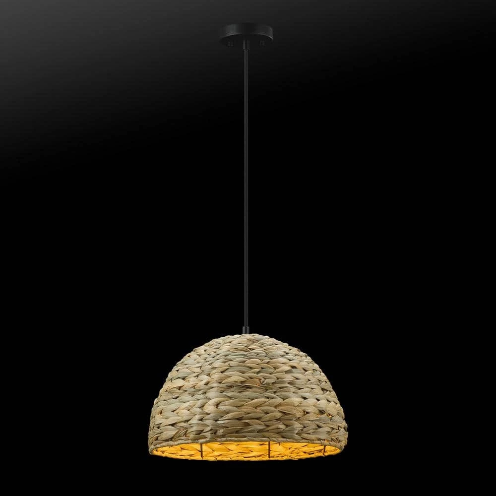 - WOVEN NATURAL TWINE SHADE: the modern bohemian styling of this 16-inch natural twine shade is accented by a black canopy and black hanging cord to offer a warm glow for any room in your home