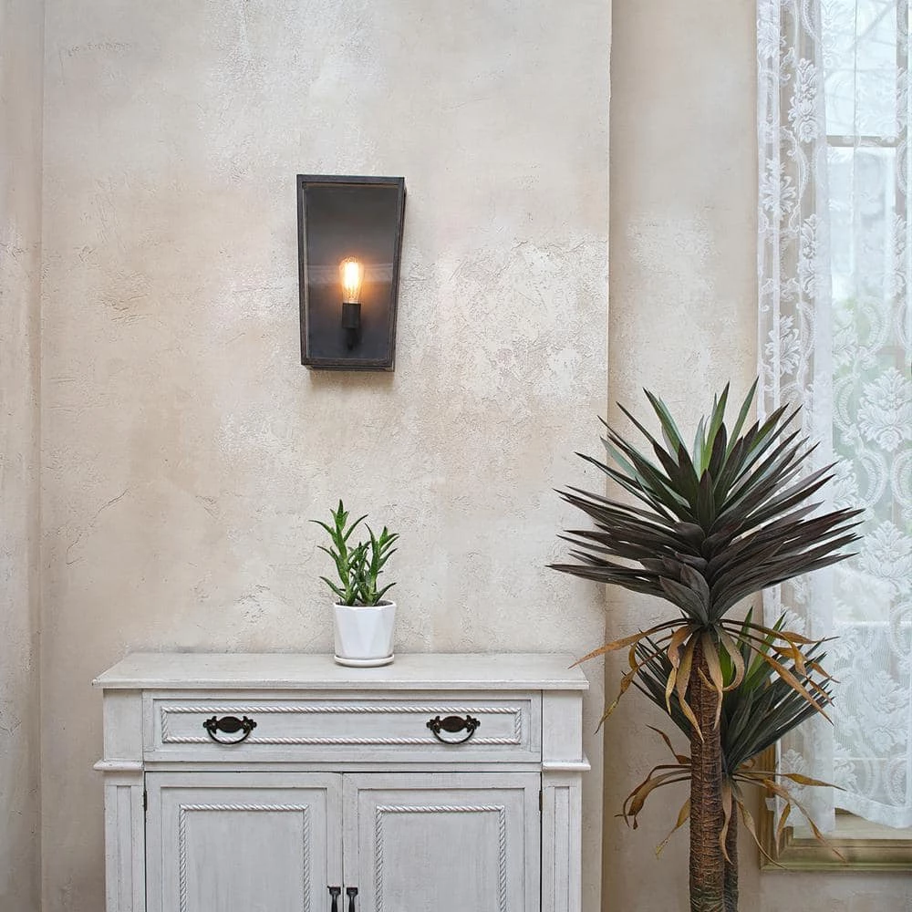 - Modern farmhouse: with a neutral faux wood finish and clear glass shade the Greer 1-light outdoor wall sconce is the epitome of a Modern farmhouse design that complements any outside decor