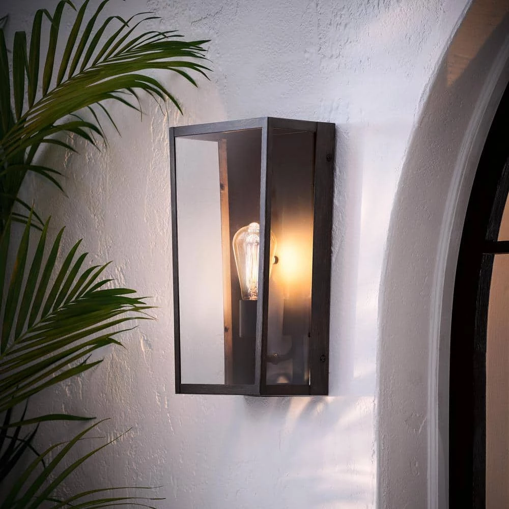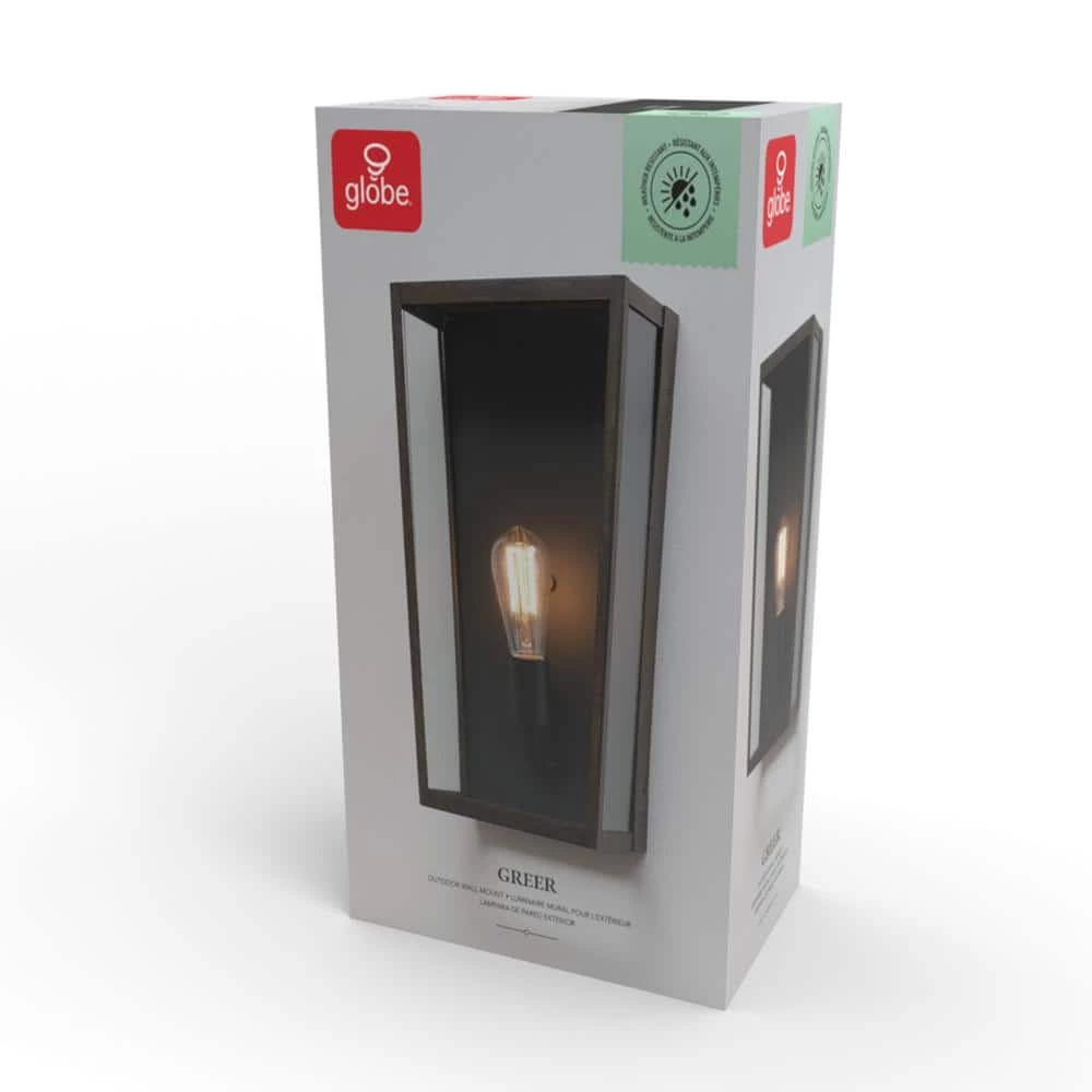 Upscale your outdoor space with the beautifully designed Greer 1-Light Outdoor Wall Sconce. Combining a rectangle façade with a warm faux wood finish, Globe Electric has created a wonderfully rustic piece to complement any outside living decor. With a clear glass inner shade, you can illuminate your entranceway easily and brightly. Change the look of the wall sconce and make it uniquely your own by adding a different bulb. Try a vintage Edison bulb to complete the modern farmhouse aesthetic or try a designer bulb for a completely different look.