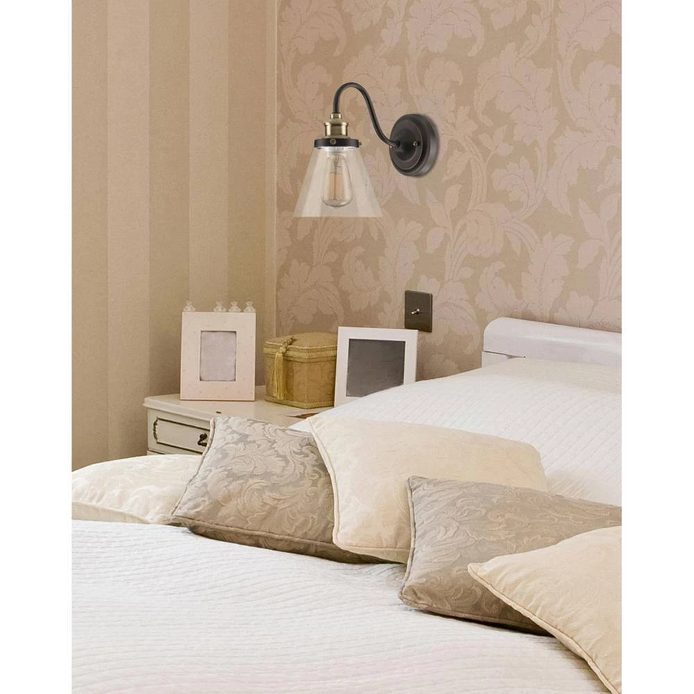 The Jackson Wall Sconce has a clear glass shade and a trendy traditional lantern style to create a warm, rustic atmosphere in your living space. With an oil rubbed bronze finish and antique brass accents, you can place it on either side of your bed to add warmth and dimension to your bedroom decor or you can place it in your living room to use as a reading light. Plus, the curved connecting arm adds a stylish element and needs to be shown off. Lastly, you can add any bulb you want to truly customize this sconce. A vintage Edison bulb helps complete the rustic feel while a designer bulb can help showcase your unique style. So many options.